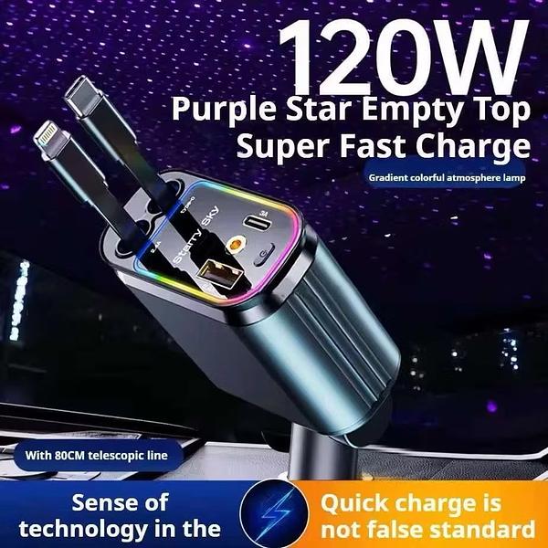 120W Carregador de carro retrátil com luz LED Carregamento Rápido no Teto do Veículo para iPhone e Celulares Samsung