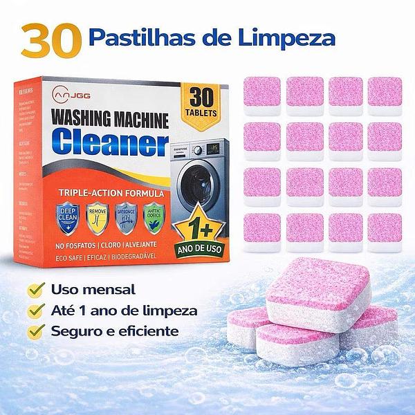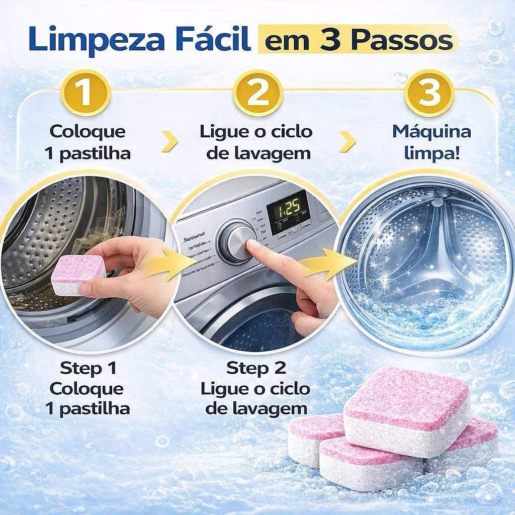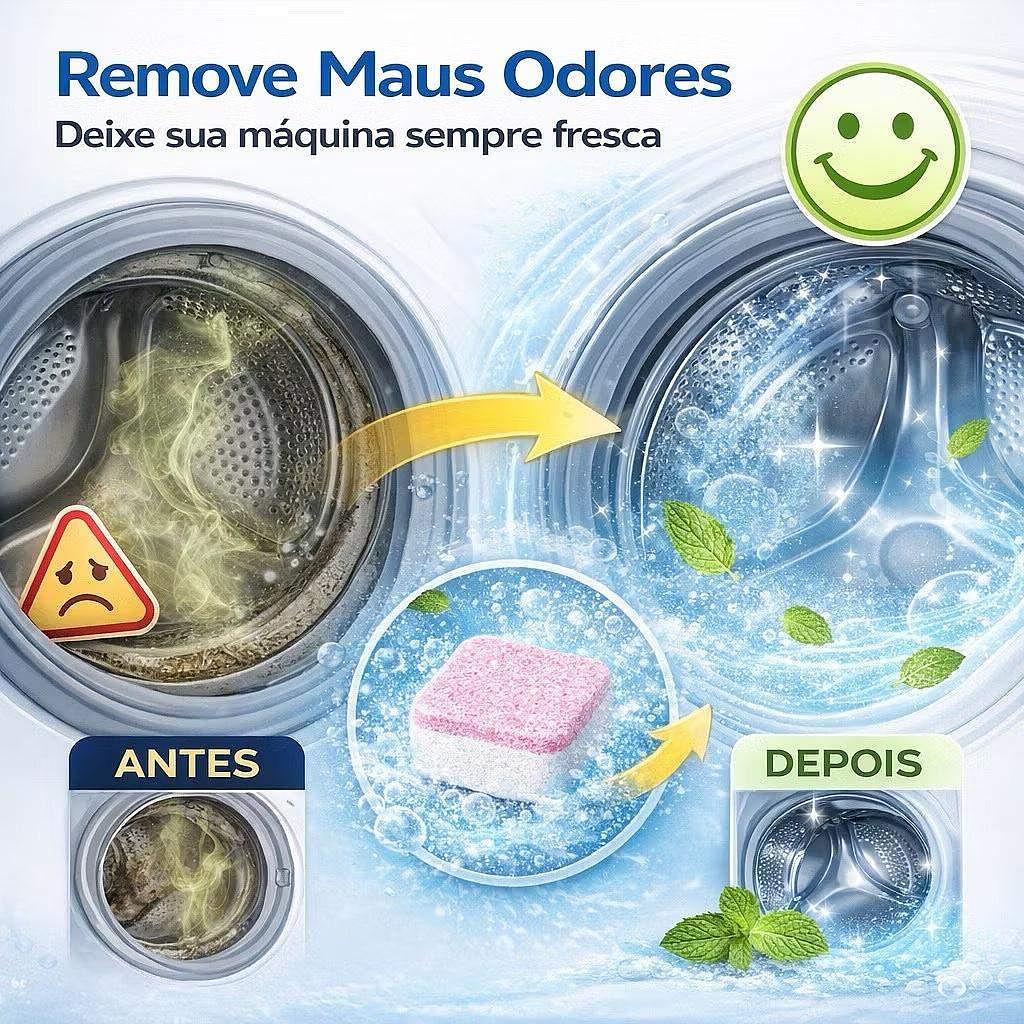 30Tablete Pastilhas para Limpeza de Máquina de Lavar Removedor de Odor Limpeza Profunda Tambor Lava e Seca