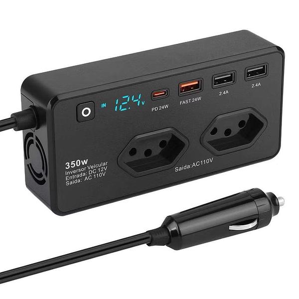 350W Isqueiro Do Carro Plug Conversor De Tensão 2 USB 2 Tipo-C Porta Veículos Carregamento Rápido Portátil Energia—110V