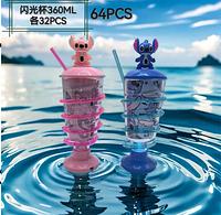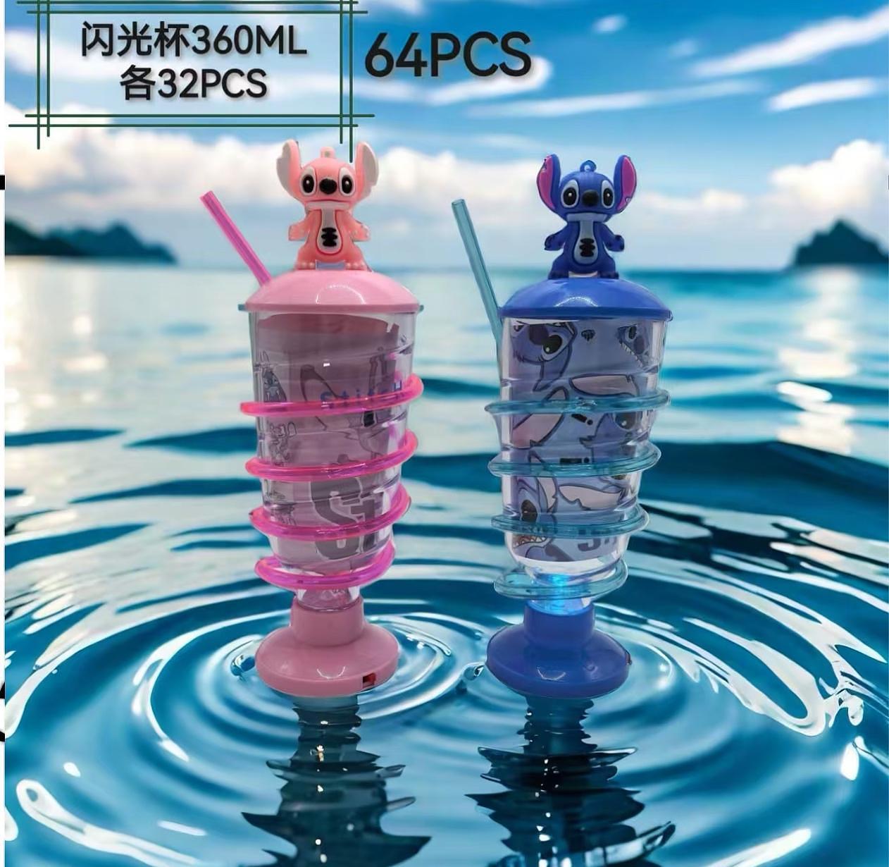 360ml Novo copo infantil STITCH com canudo e luz colorida em formato de desenho animado, portátil e com luz.