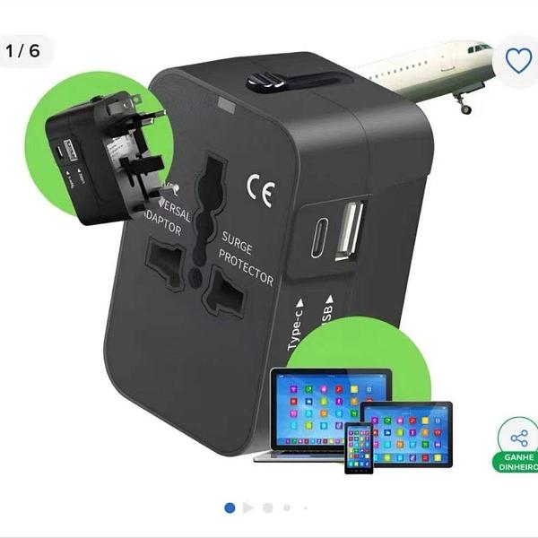 Adaptador de Tomada para Viagem Internacional Universal Usb + Tipo C Estados Unidos Europa America—LELONG