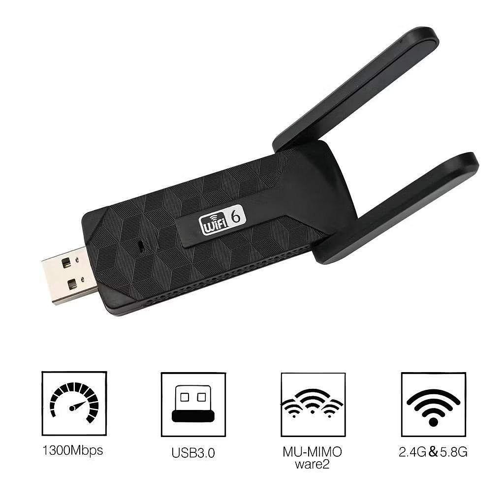 Adaptador Wi-Fi 6 USB 3.0 Dual Band 2.4G/5.8G 1300Mbps com Antenas jorge