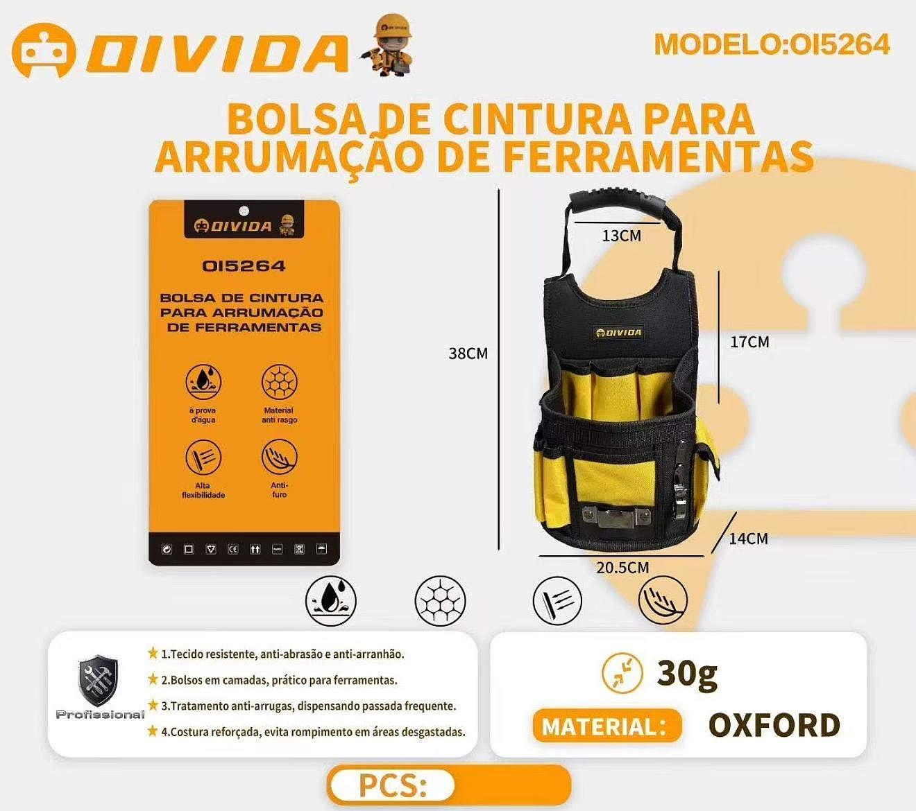 Bolsa de Ferramentas Resistente com Cinto e Alça Removível