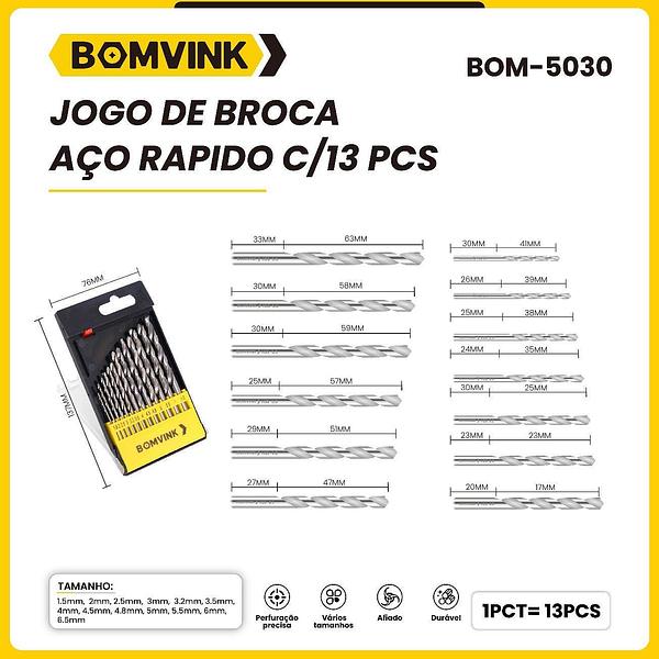 BOMVINK BOM JOGO DE BROCA AÇO RAPIDO C/13 PCS