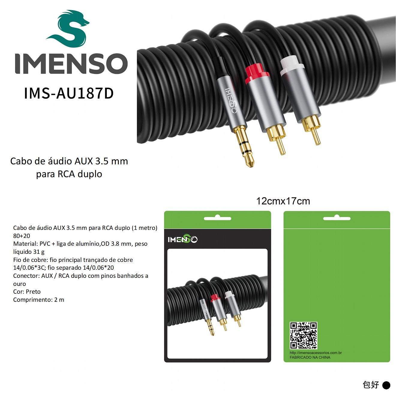 Cabo Imenso Original RCA Estéreo P2 2m IMS-AU187D