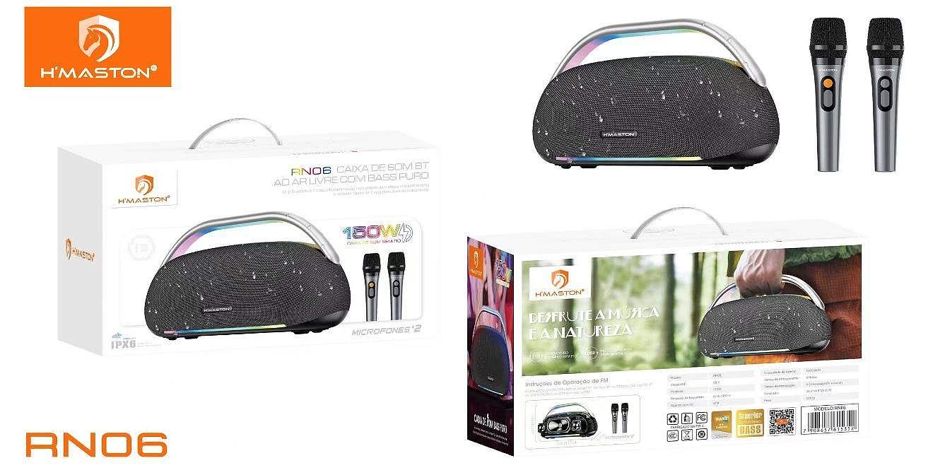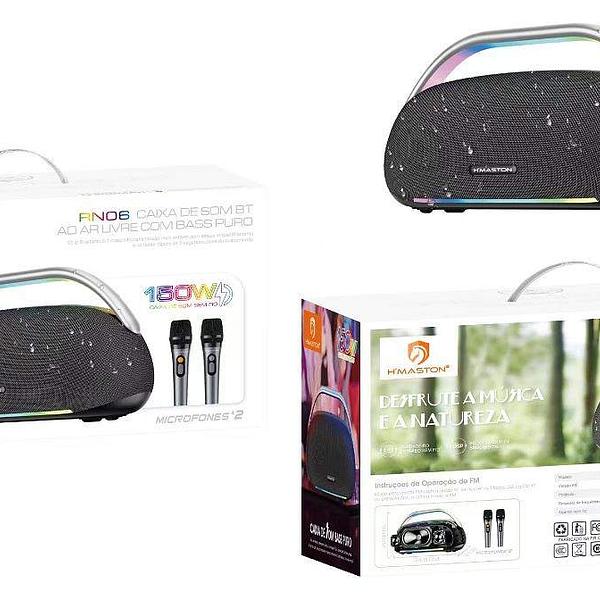 CAIXA DE SOM 150W/ 2 MICROFONES SEM FIO—HMASTON