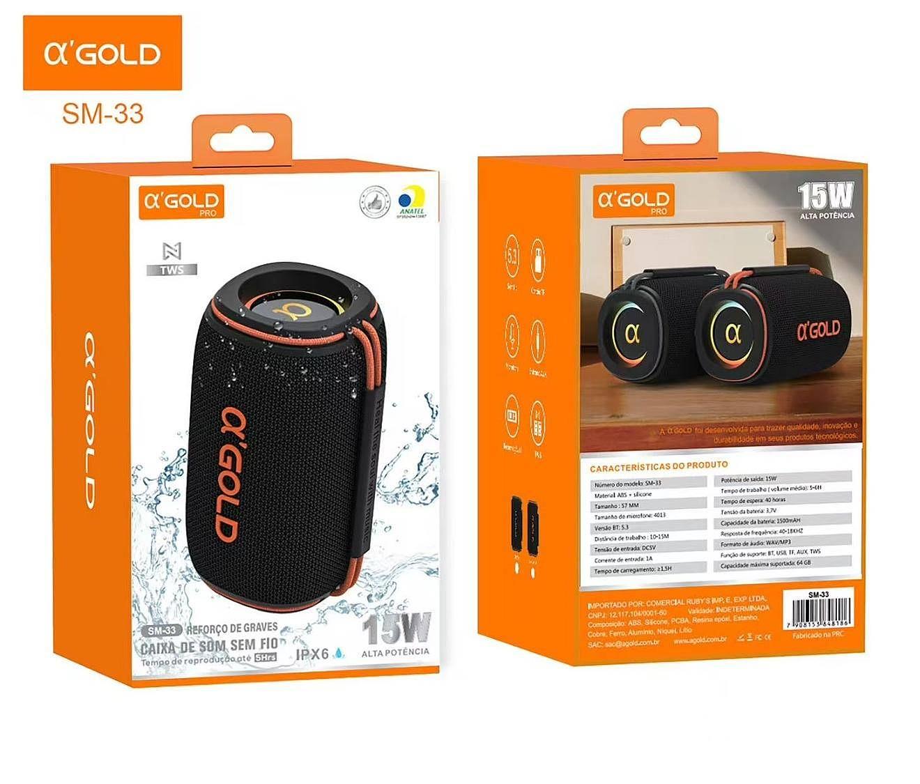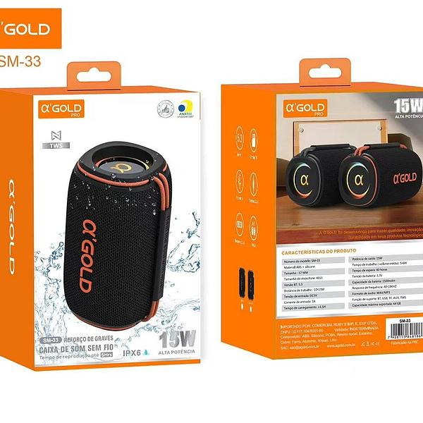 Caixa de Som AGOLD Resistente à Água e Portátil