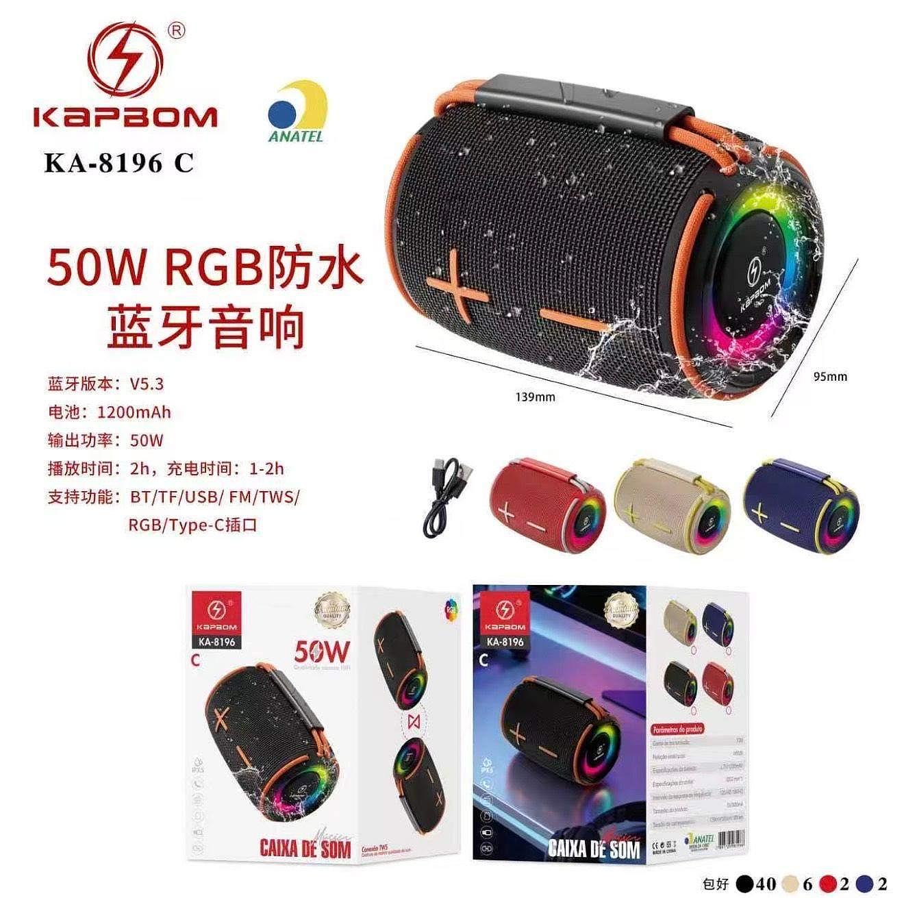 Caixa de Som Bluetooth Portátil 50W– RGB, IPX5 Resistente à Água, Potente e Compacta