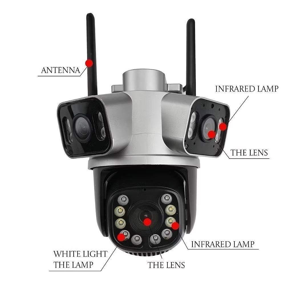 Camera Seguranca Externa 3 Lentes 180° Zoom Ótico Detecta Pessoa Animal Visao Noturna a Prova d Água