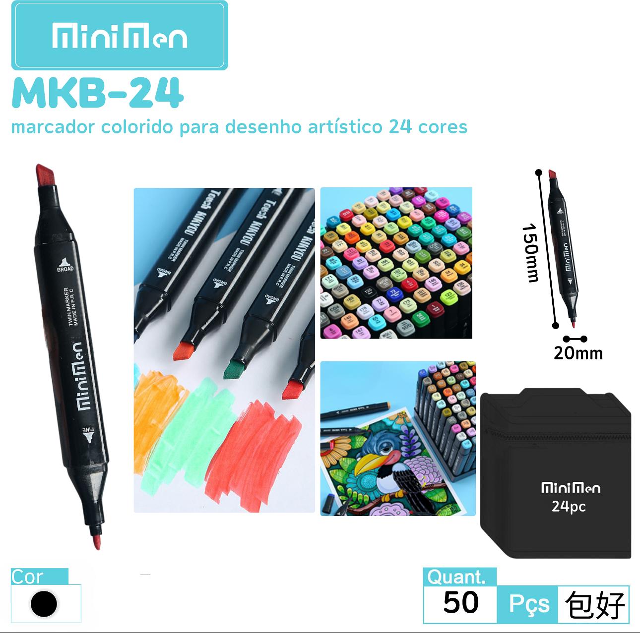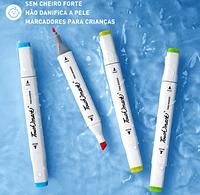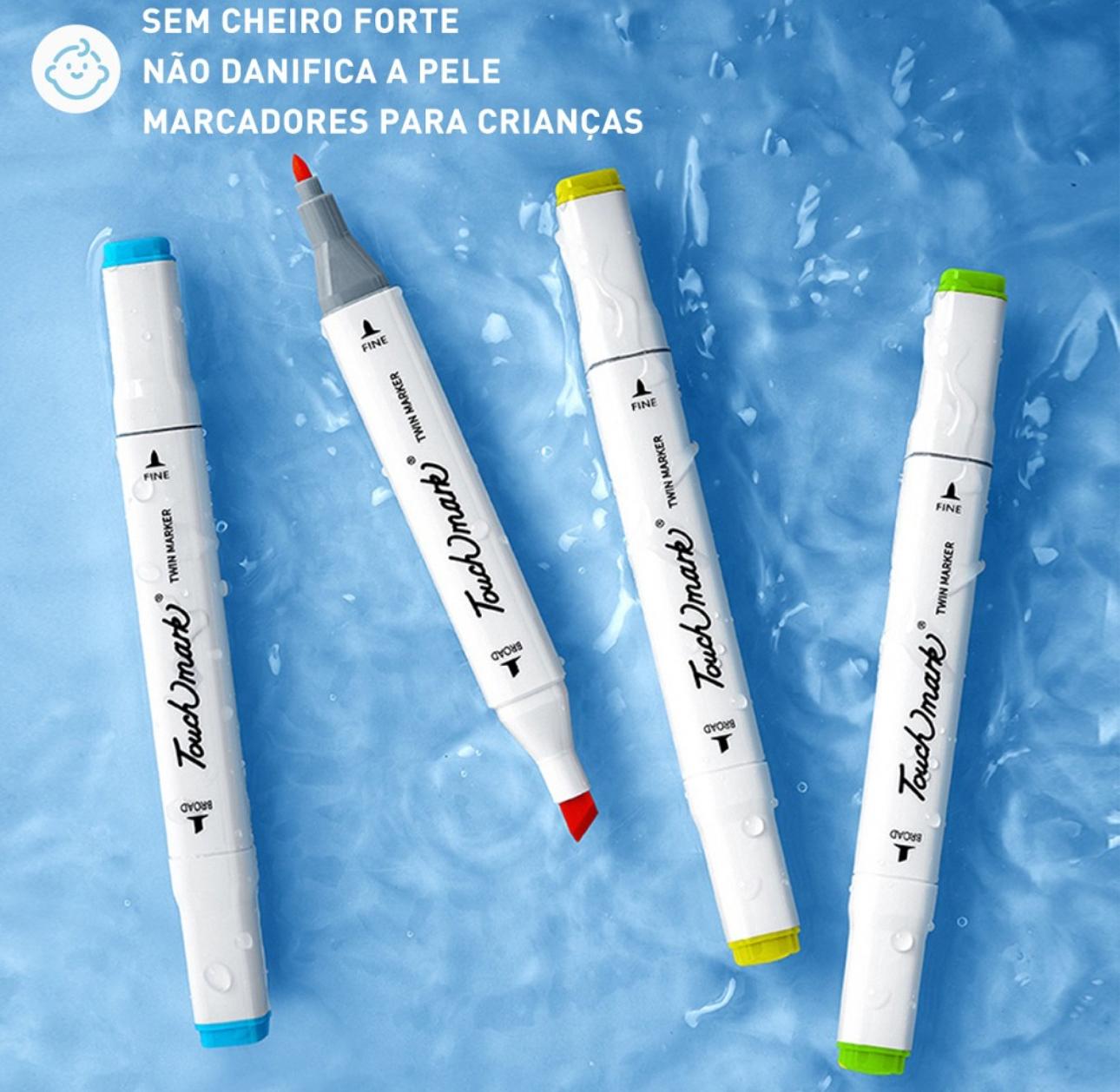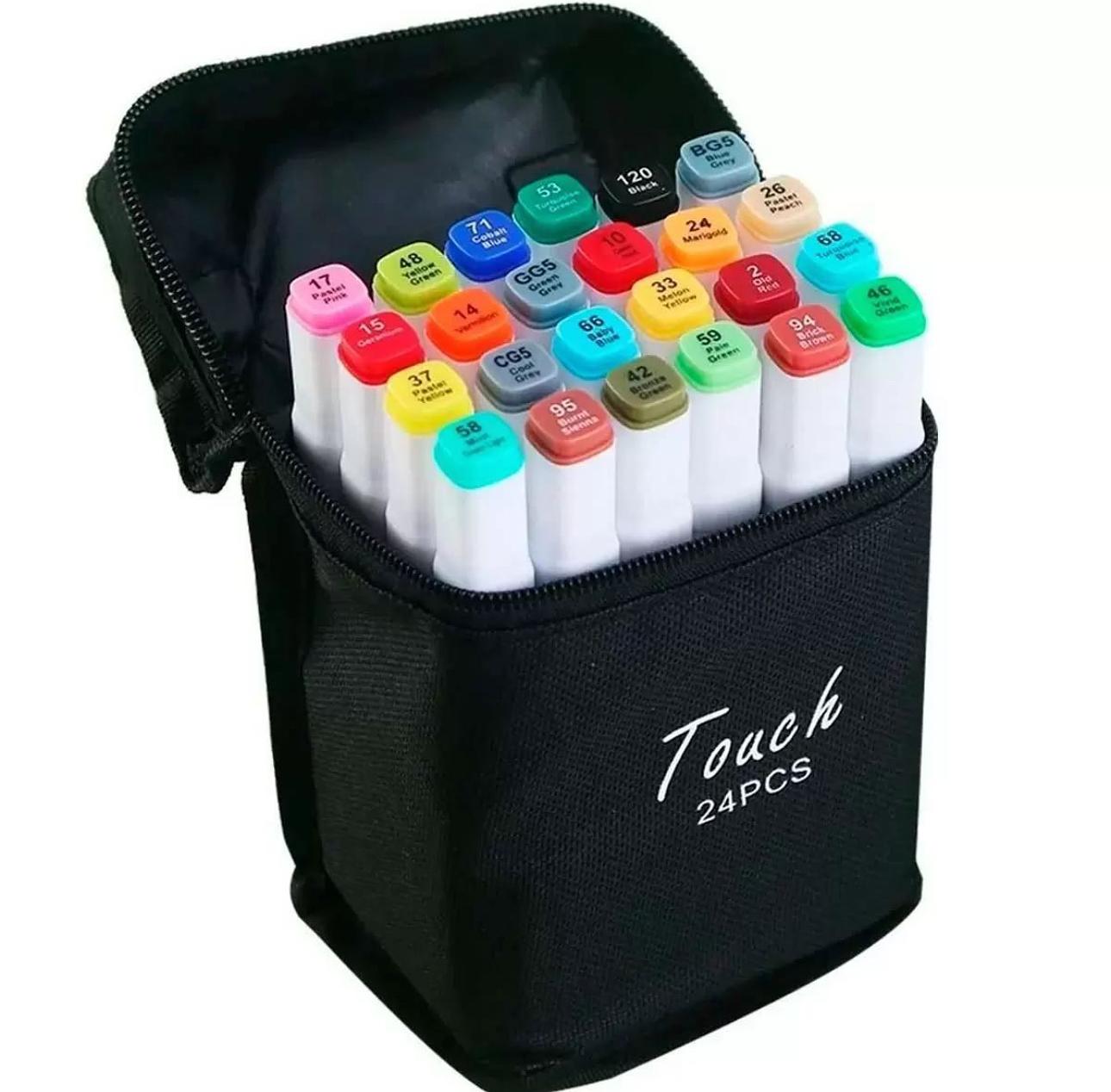 Caneta Colorida Ponta Dupla Conjunto Estojo Escolar Marcador 24pc