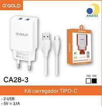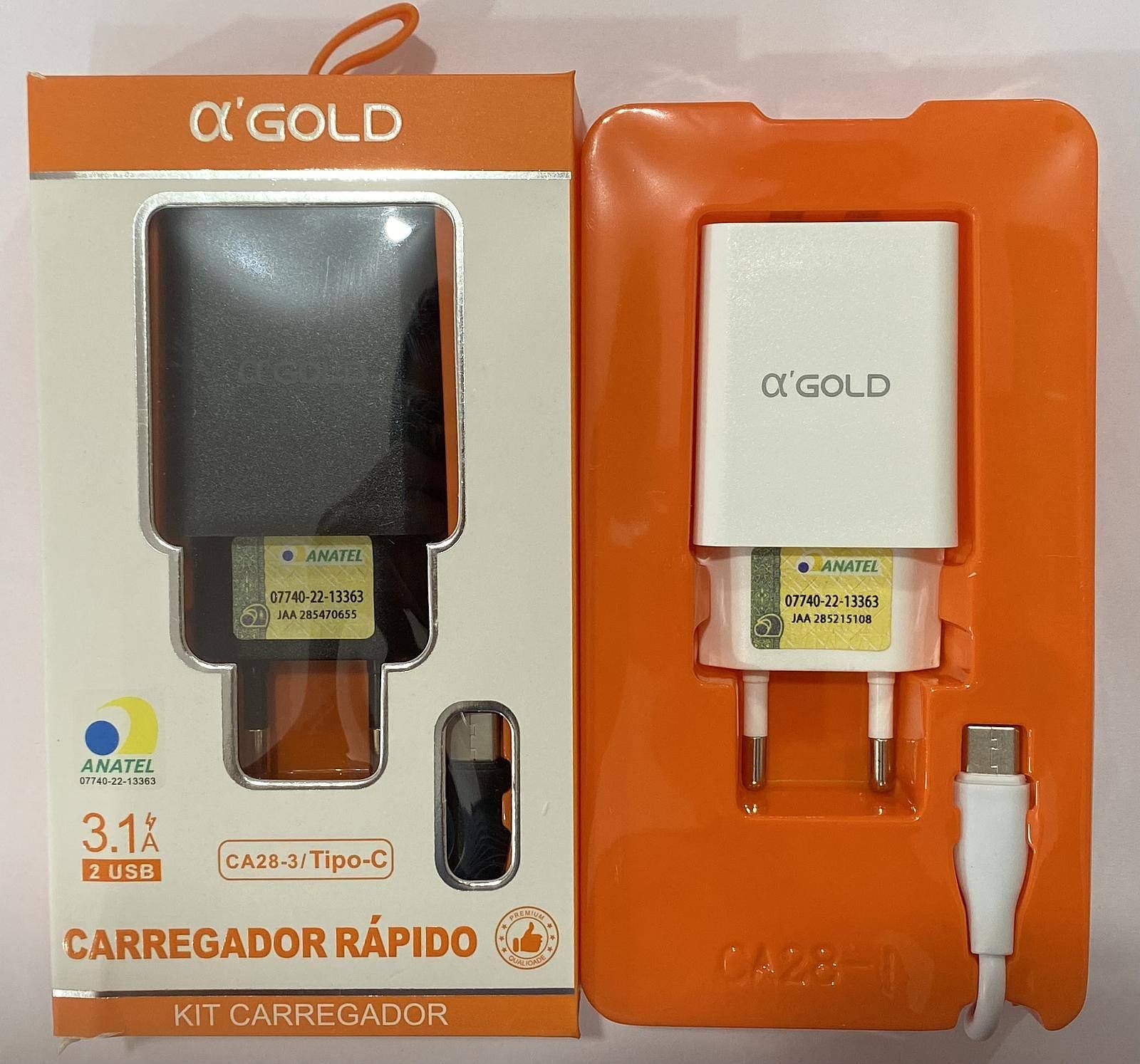 Carregador Completo TurboRápido AGOLD 2 Usb 4.1A Type-c