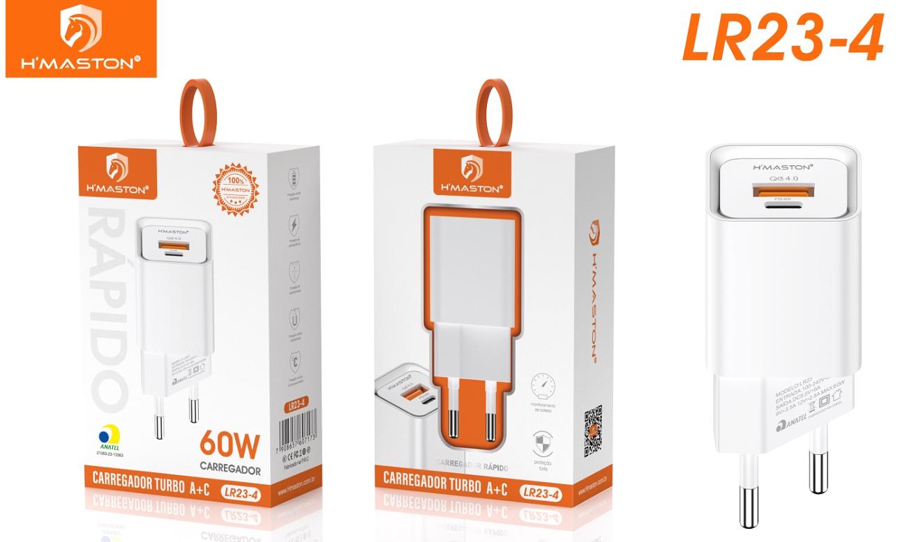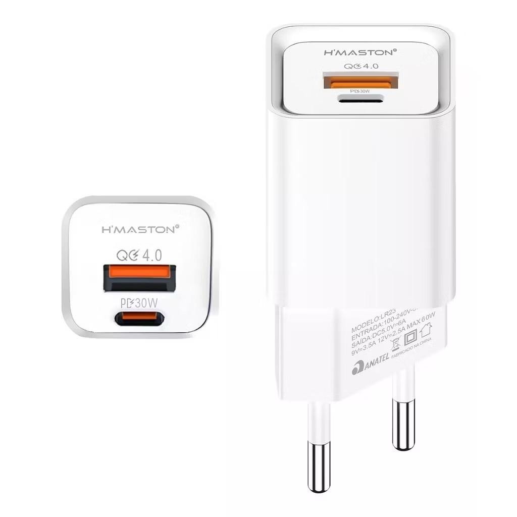 Carregador De Tomada Turbo 60w Fonte Usb E Usb Tipo C Lr23-4