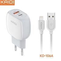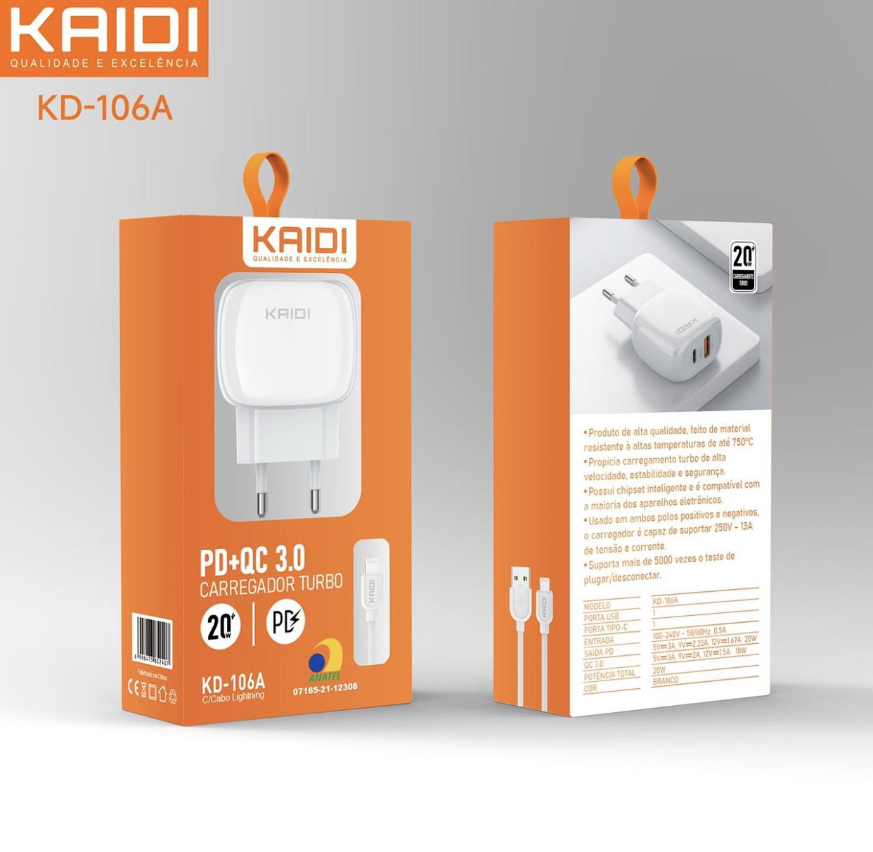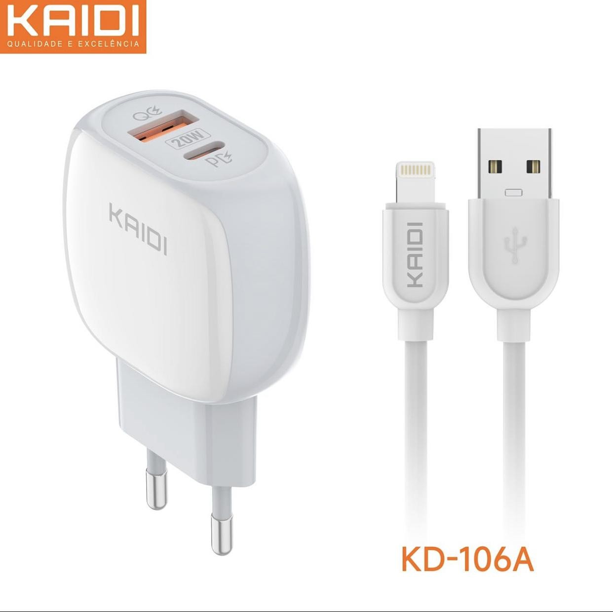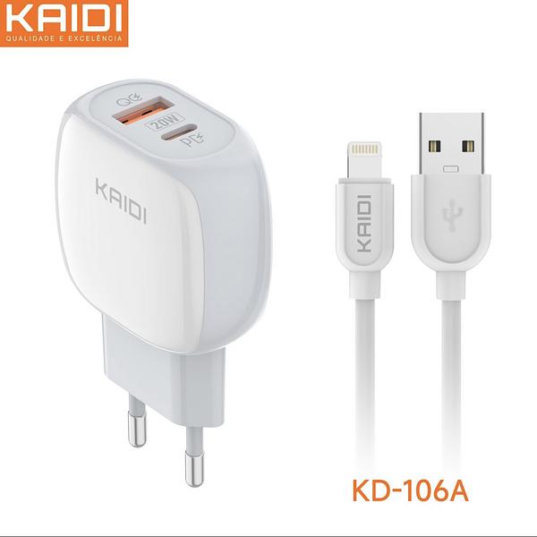 Carregador Duplo Rápido Turbo 20w Kaidi Usb + Usb-c Pd Qc para Iphone