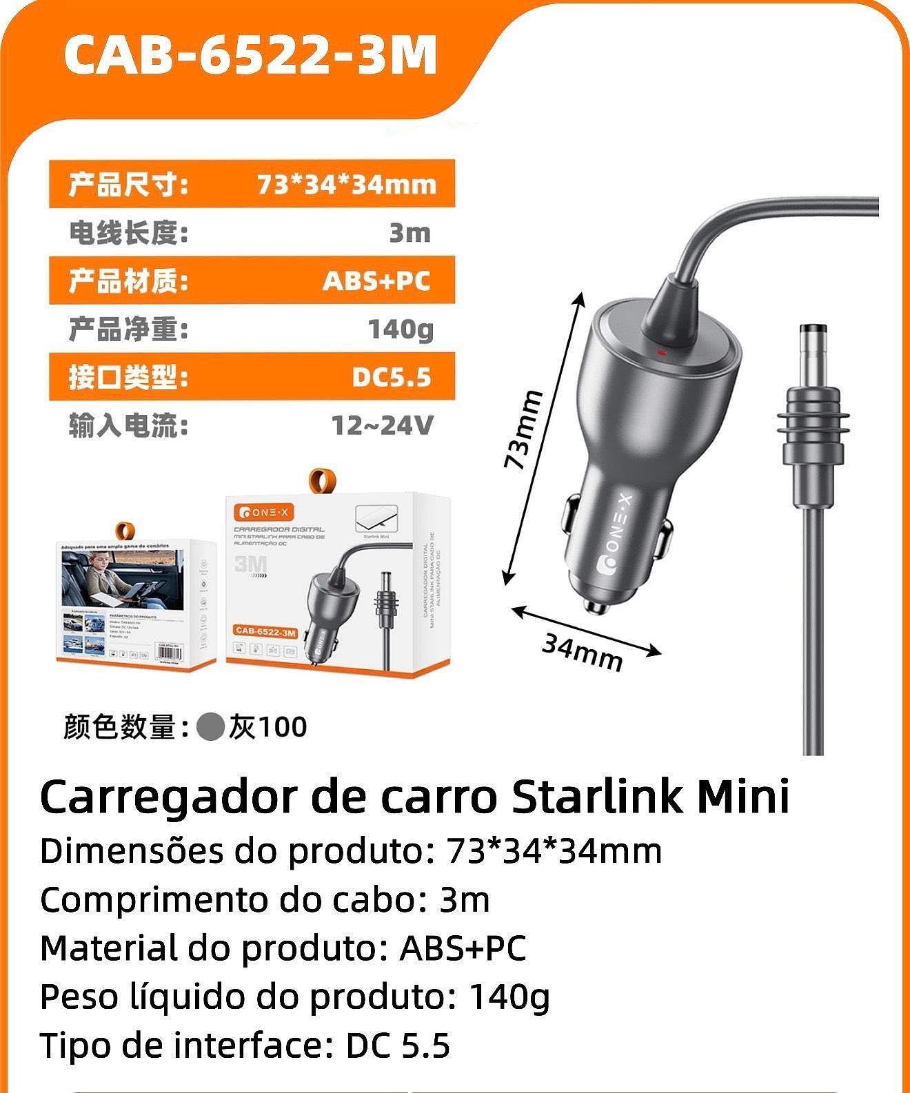 Carregador Para Starlink Mini Cabo De Alimentação 12V-24V Adaptador DC PD—3M