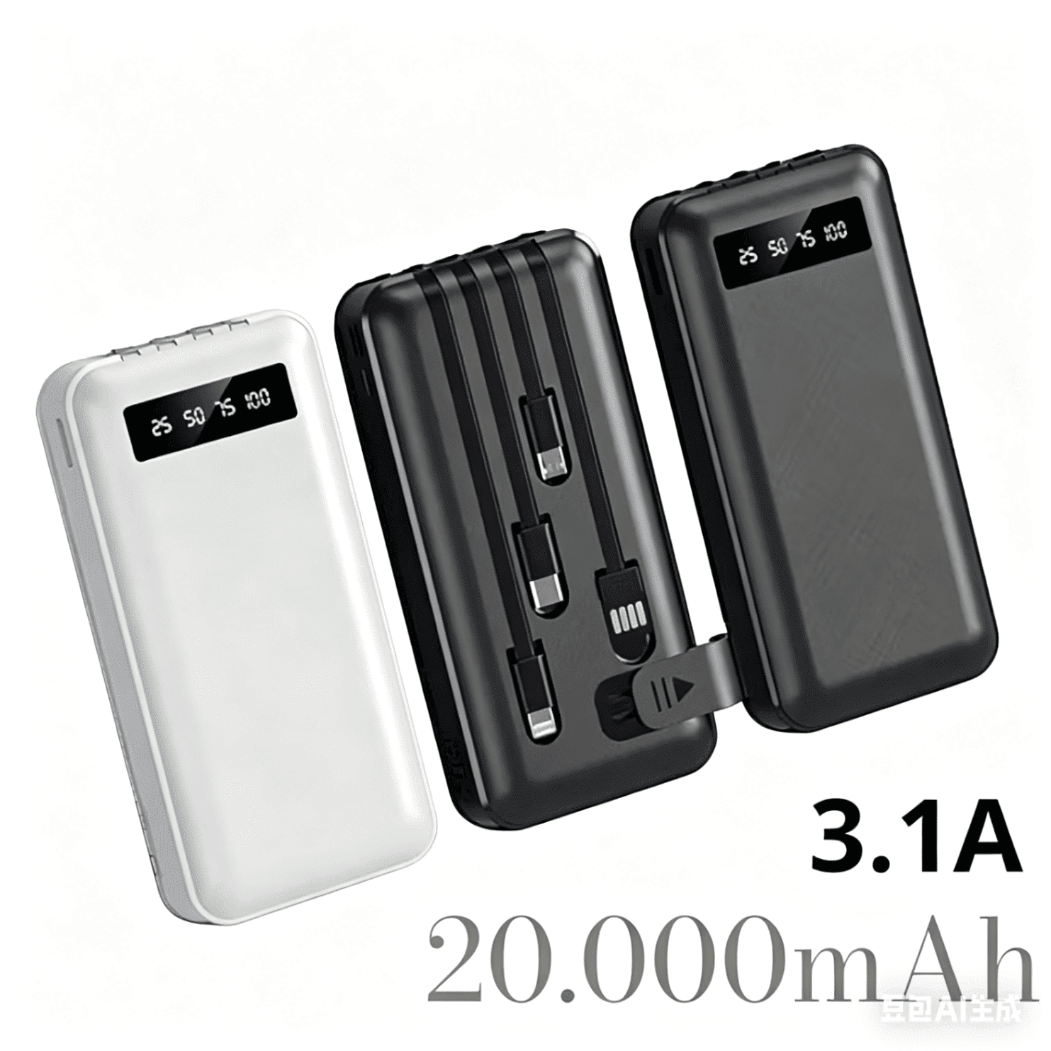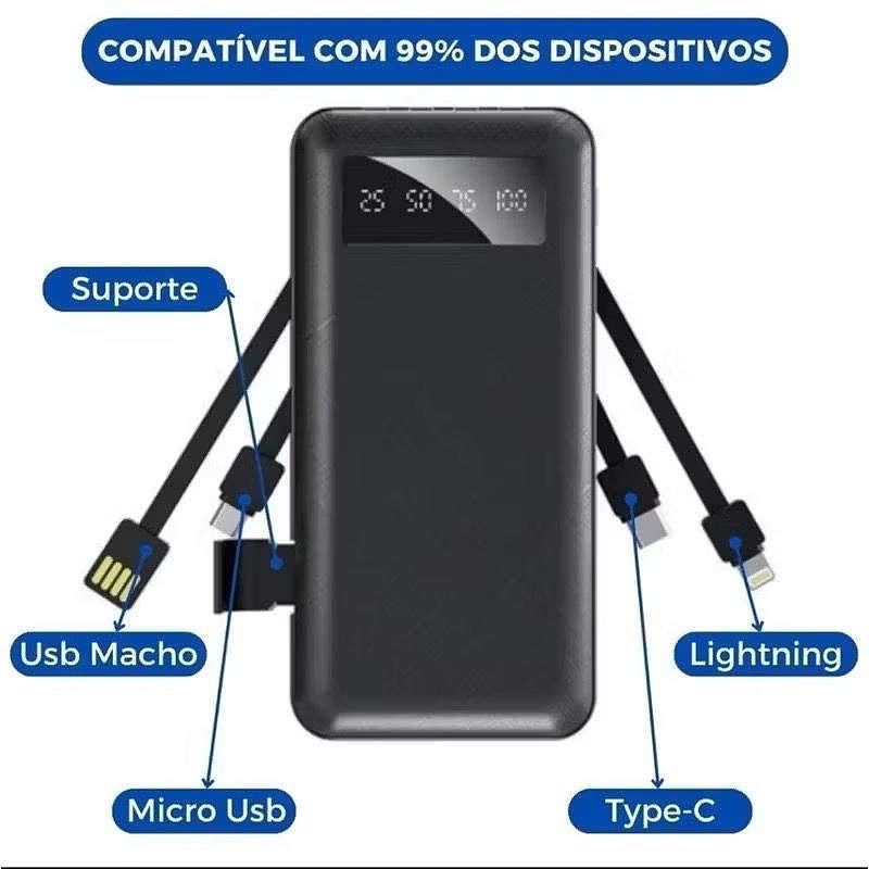Carregador Power Bank Portátil 20000Mah Universal Saída 4 Cabos
