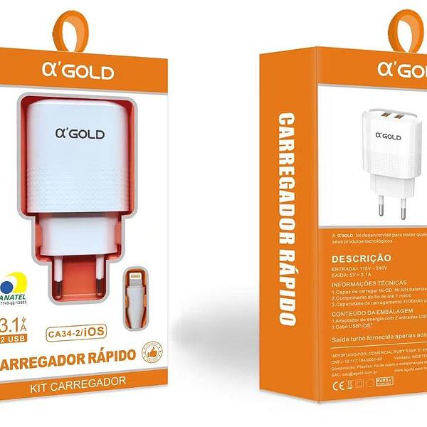 CARREGADOR RÁPIDO A’ GOLD COM 2 SAÍDAS USB 5.1A PARA iPhone