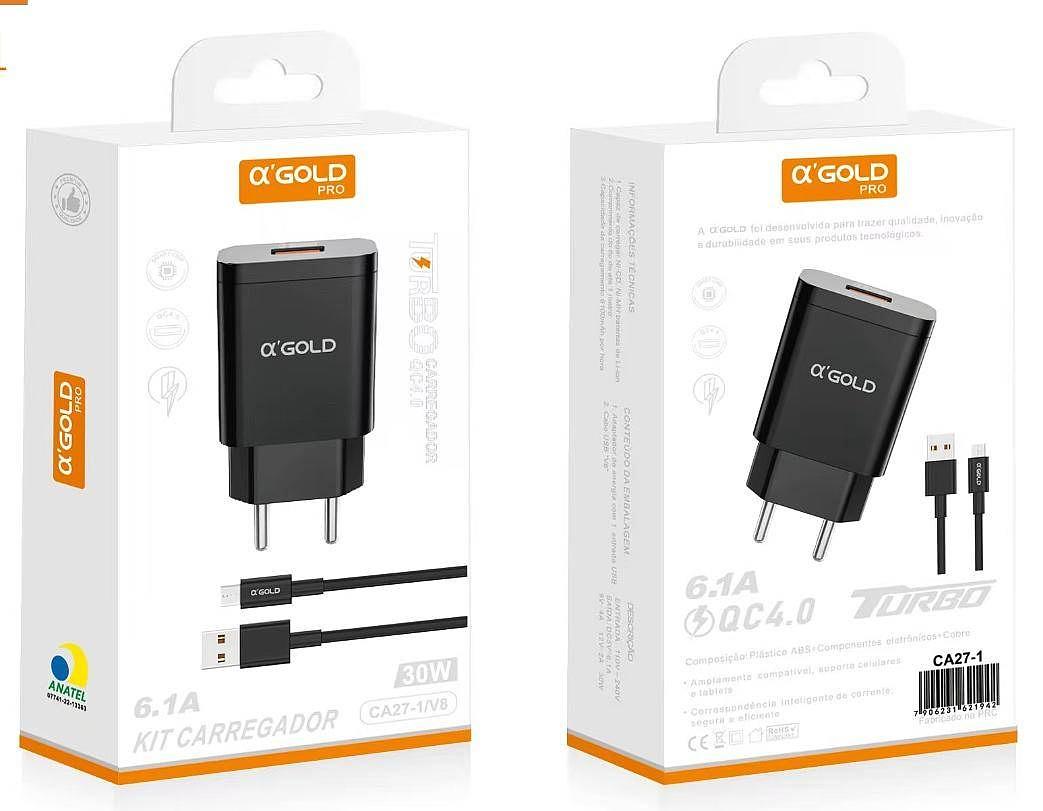 Carregador Turbo 30w 6,1a + Com Cabo Usb TYPEC- A'gold