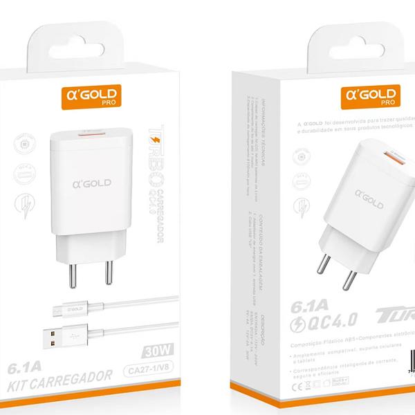 Carregador Turbo 6.0a uma usb 30w para v8–Agold