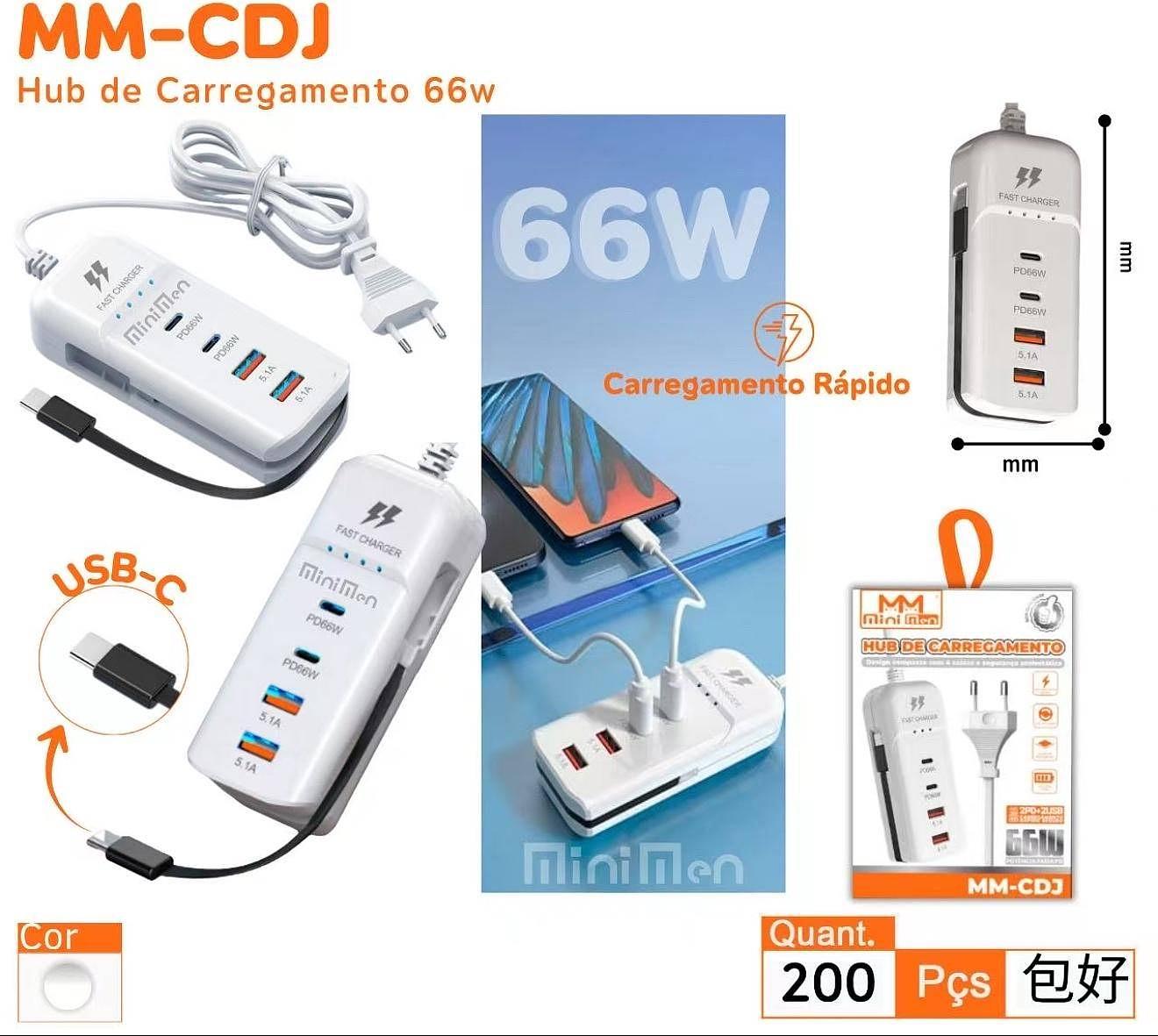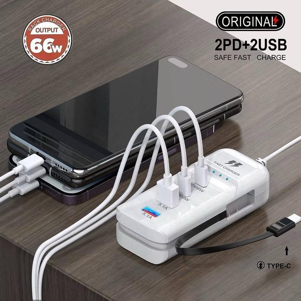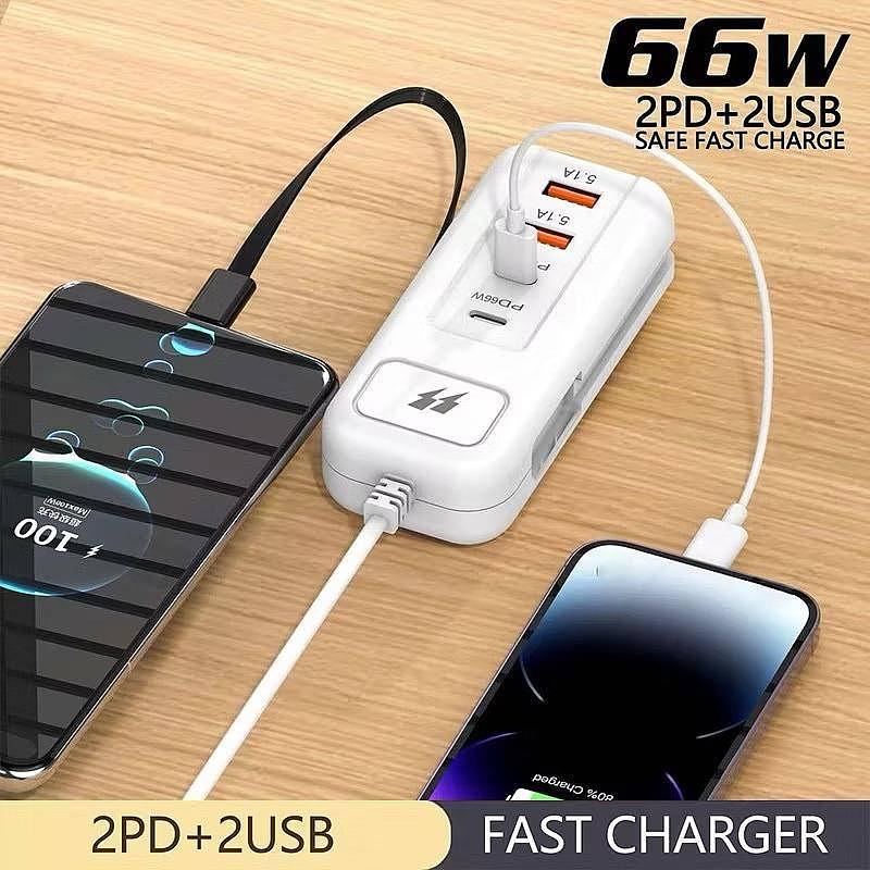 Carregador Turbo 66W Portátil 2USB+2Tipo-C – Fonte Rápida para Celular Tablet e Notebook