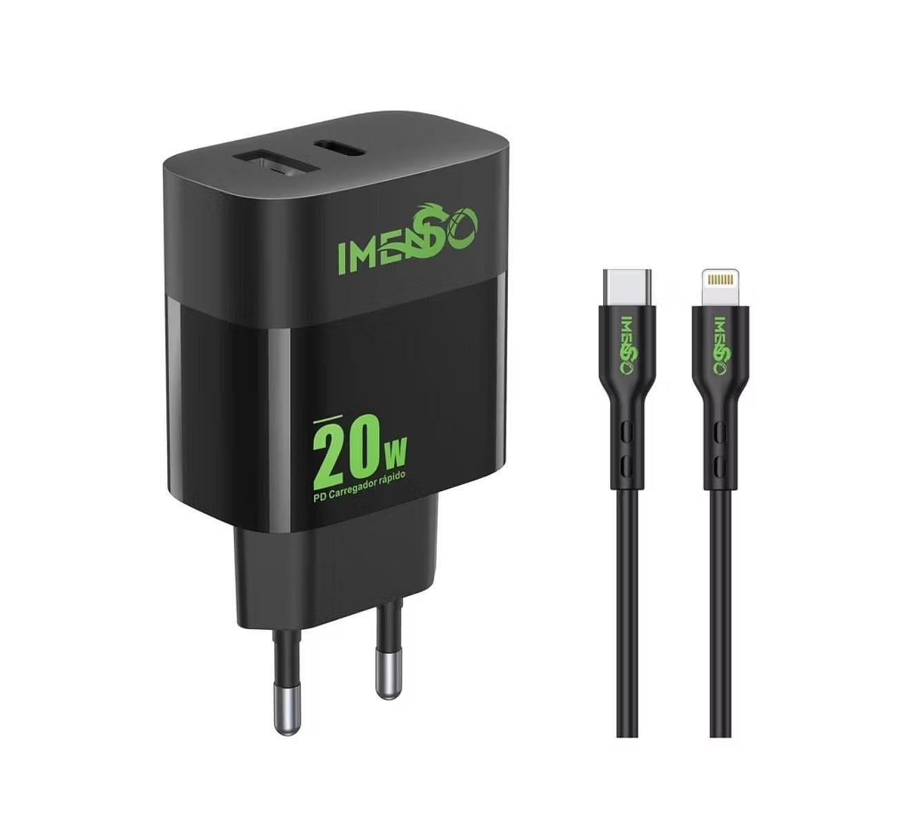 Carregador Turbo Entrada Dupla USB-A e USB-C saída Lightning