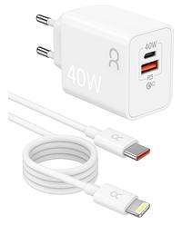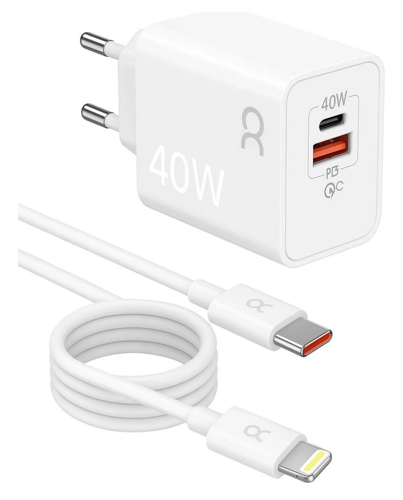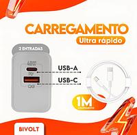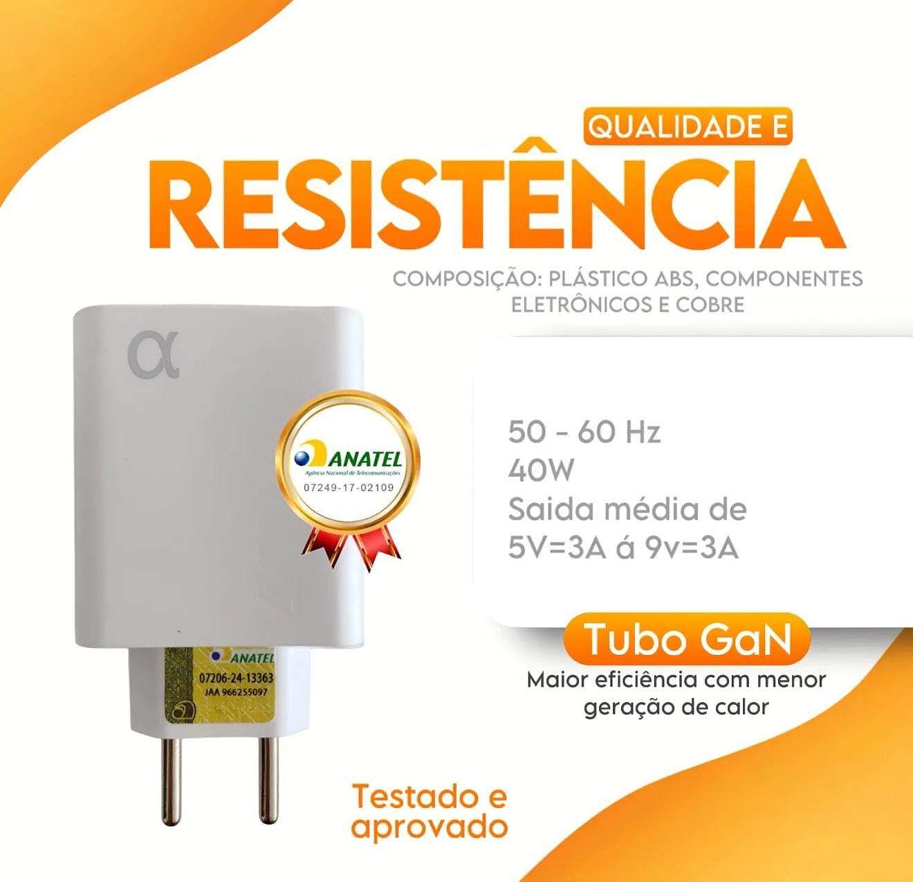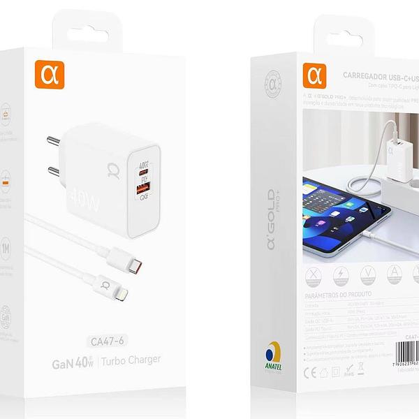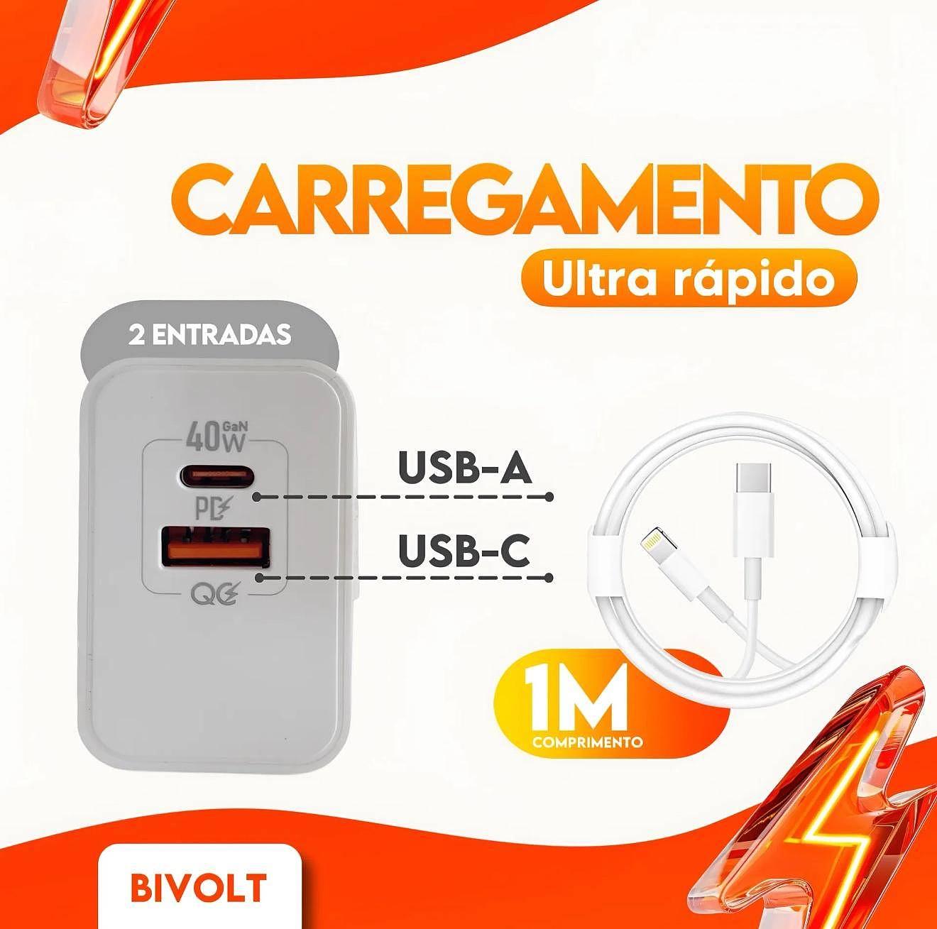 Carregador Turbo Gan 40w Para Iphone 8 X Xr 11 12 13 14 Pro Max Branco