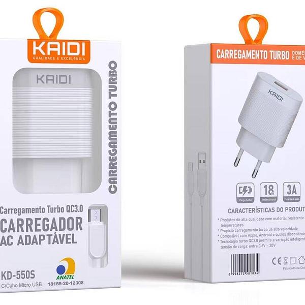 Carregador Turbo Para V8 QC3.0 3A Kaidi 18W