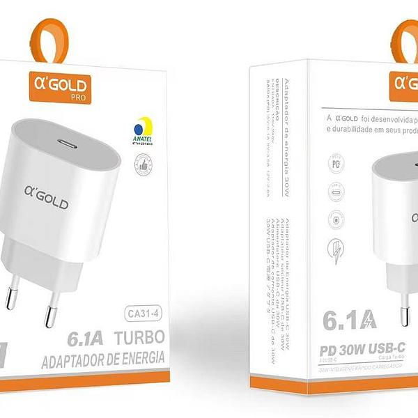 Carregador USB-C 6.1A Turbo PD 30W a`GOLD