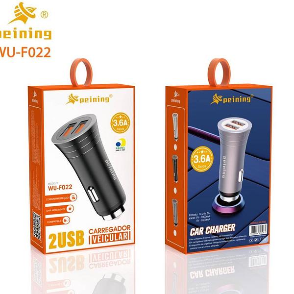 Carregador Veicular Carro Rapido 3.6A Turbo 2 Saida Usb - Carregador Veicular Carro