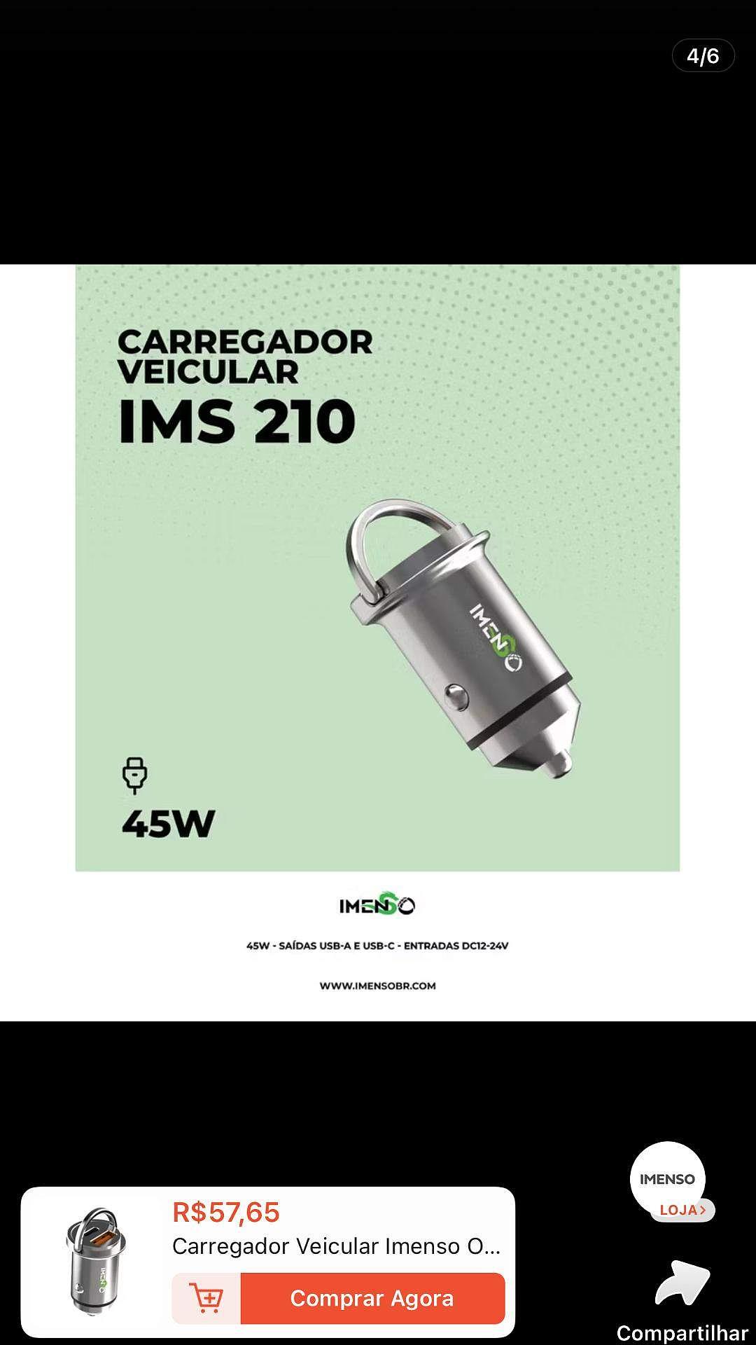 Carregador Veicular Imenso Original Ims210 45w Quick Charge Turbo