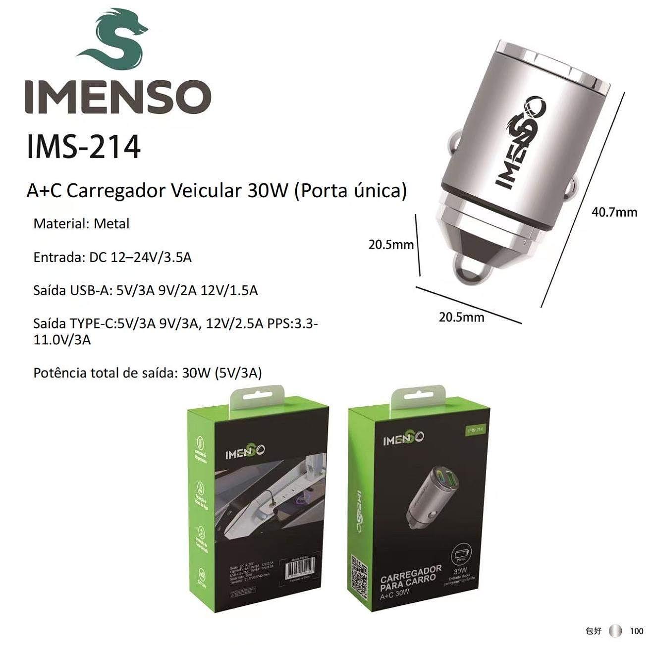 Carregador Veicular Imenso Original Ims214 30w Quick Charge Turbo