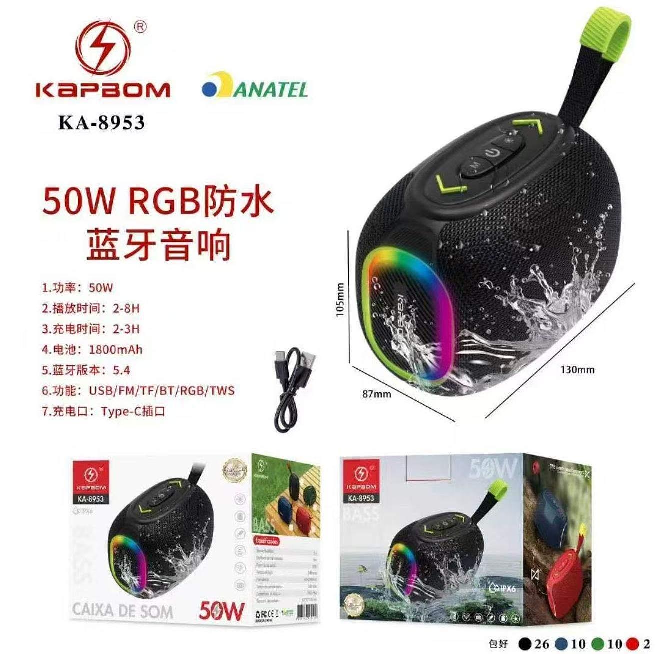 CAIXA DE SOM BLUETOOTH PROVA DAGUA 50W RGB