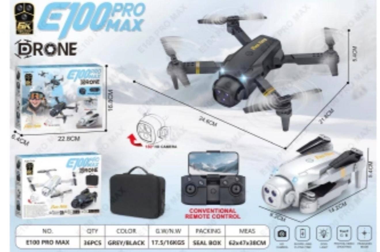 Drone E100 pro max 4k Prof câmera angular hd, wi-fi, fpv, alt hold, dobrável, rc quadrotor, helicóp,livre, brinquedos p crianças Com 2bateria