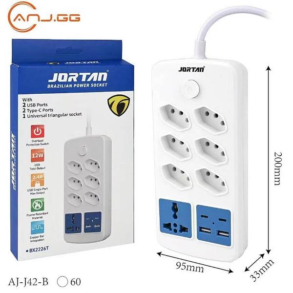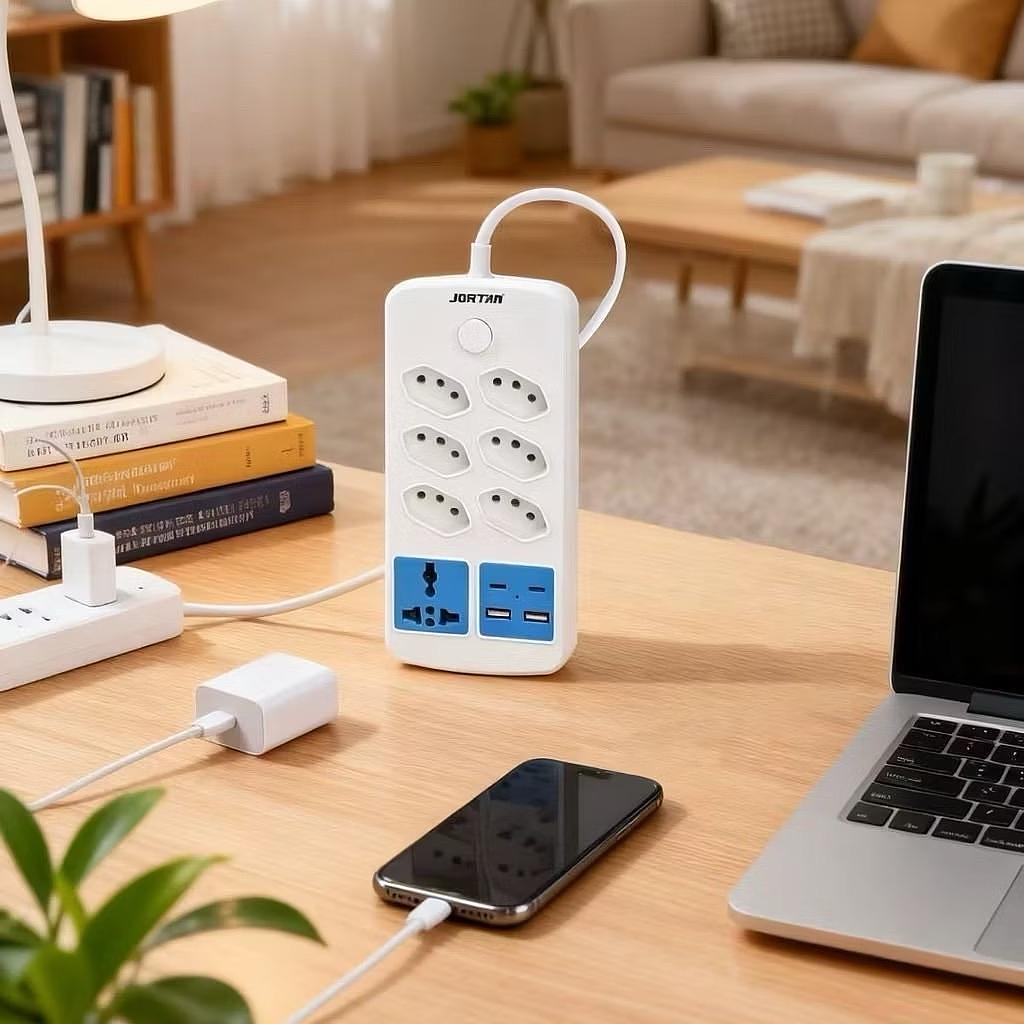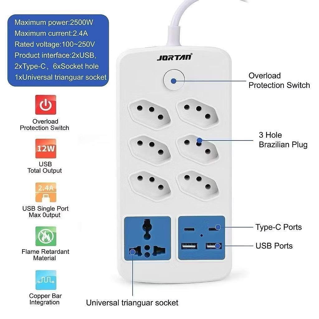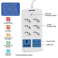 Extensão de Tomada 6 Entradas + USB e Type-C | 2500W | Com Proteção Contra Sobrecarga fang