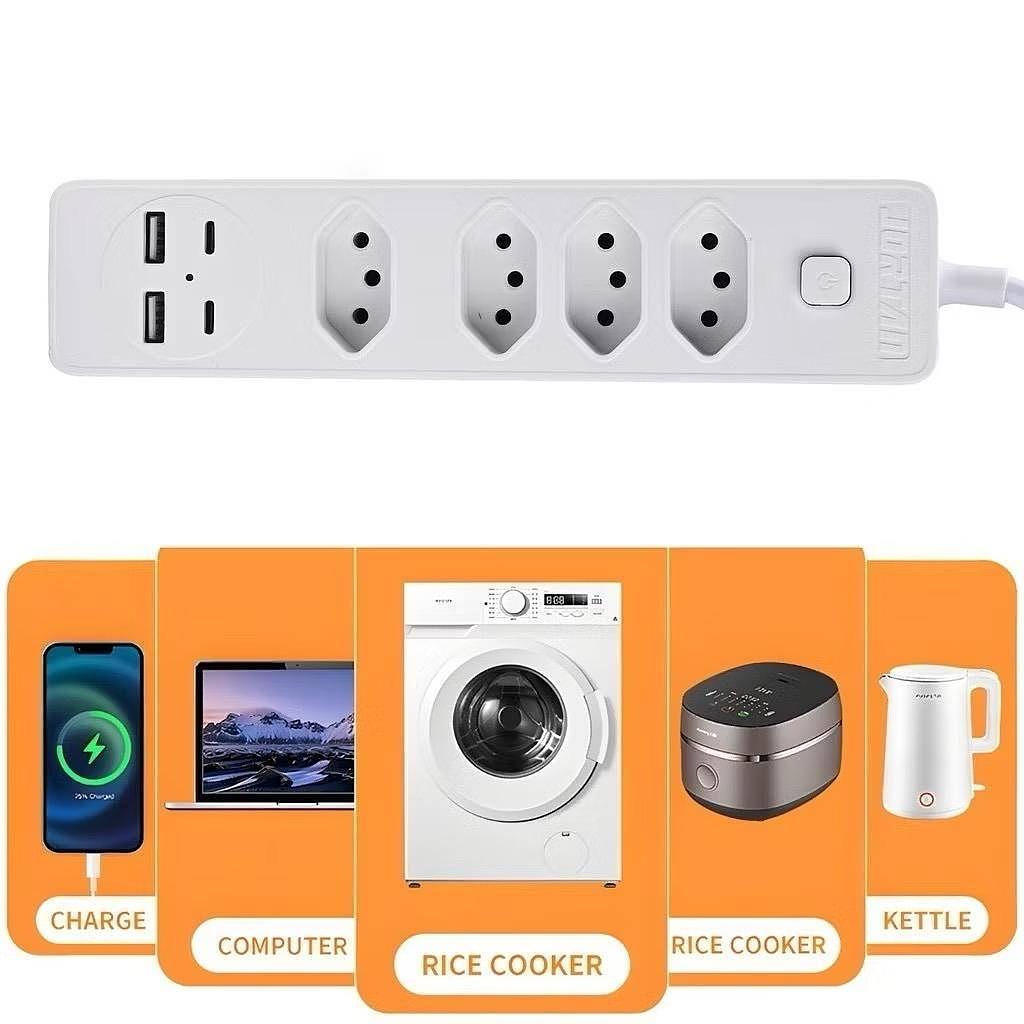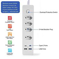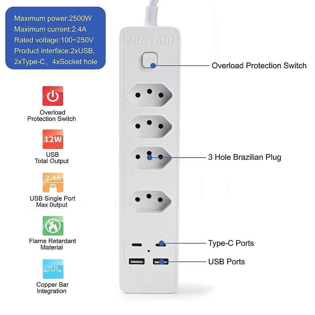 Filtro de linha Jortan de 2 m com 4 tomadas e proteção contra curto-circuito (DPS) 110/220 V jehnny