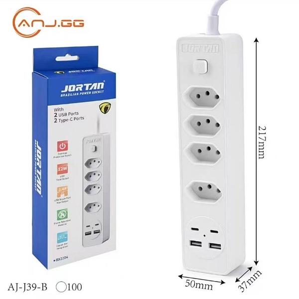 Filtro de linha Jortan de 2 m com 4 tomadas e proteção contra curto-circuito (DPS) 110/220 V jehnny