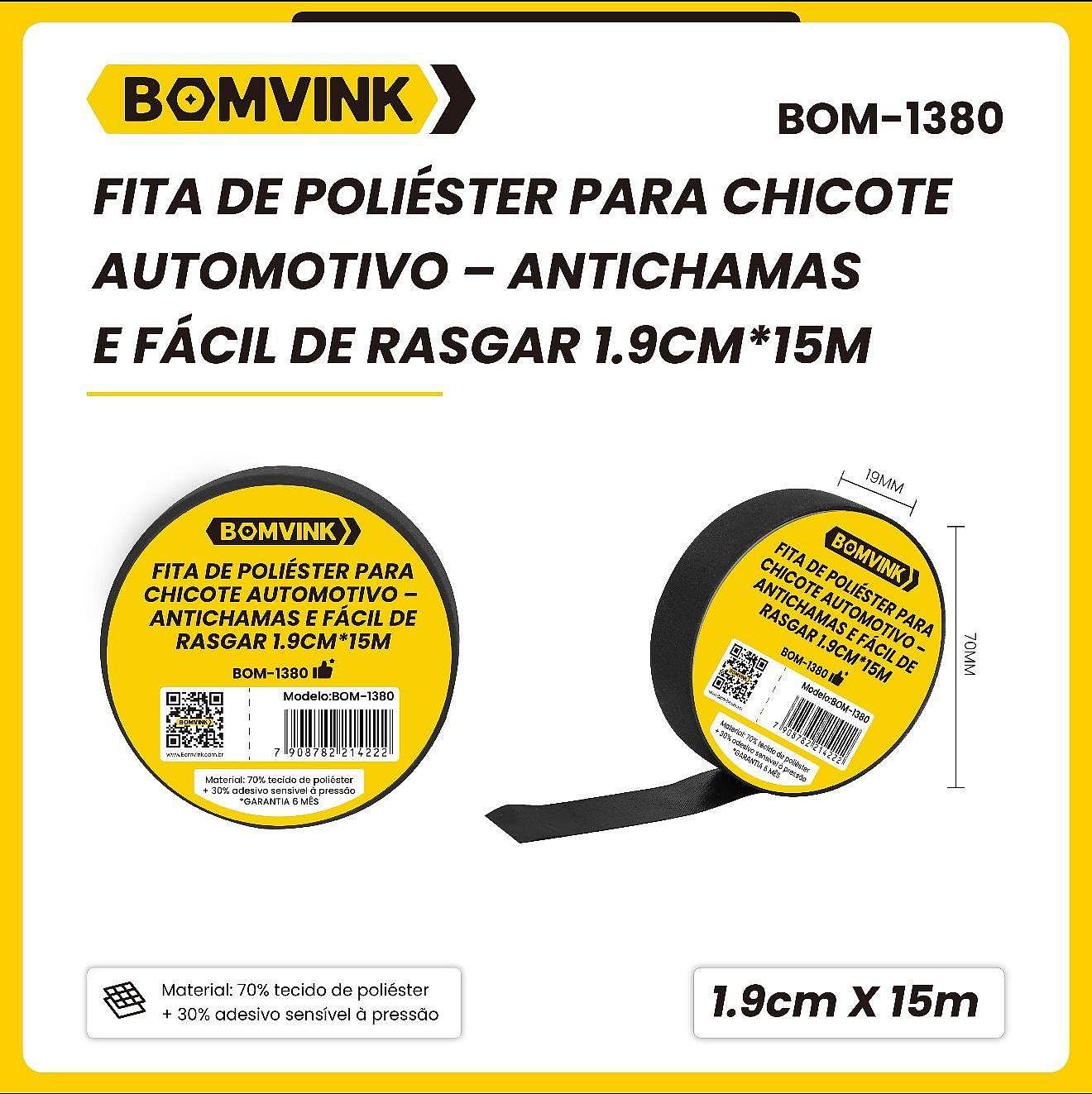 FITA DE POLIÉSTER PARA CHICOTE AUTOMOTIVO- ANTICHAMAS E FÁCIL DE RASGAR 1.9CM*15M 19MM