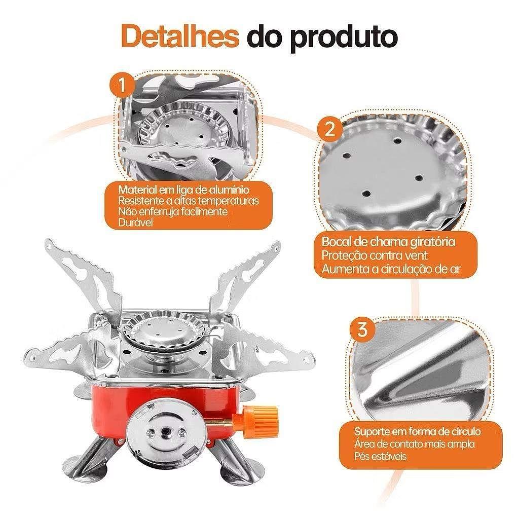 Fogareiro Portátil Fogão á Gás Ingnição Automática Camping Viagem Dobrável