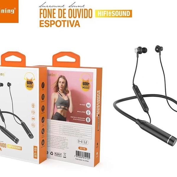 Fone de ouvido Bluetooth Esportivo ST-15 com 60h de Música – Som Hi-Fi, Leve e Resistente 5.3