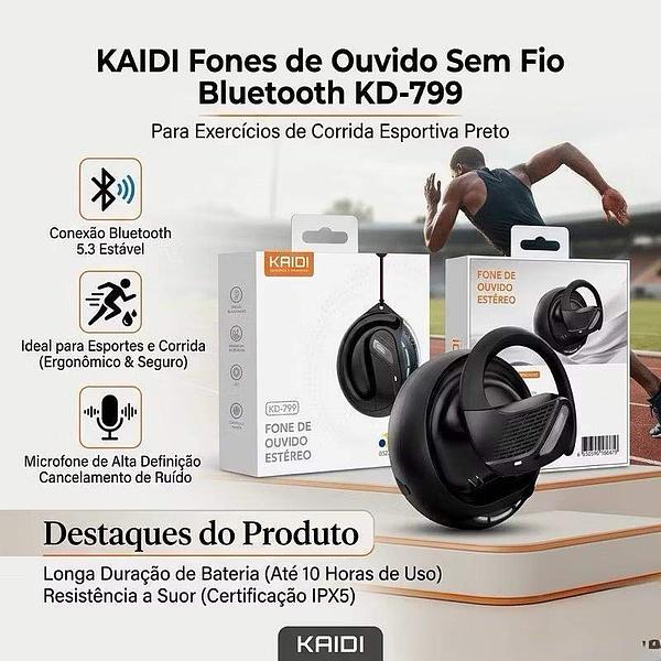 Fone de Ouvido Bluetooth KD-799 Esportivo Sem Fio Corrida Treino Academia Resistente a Suor Alta Qualidade Som Estéreo