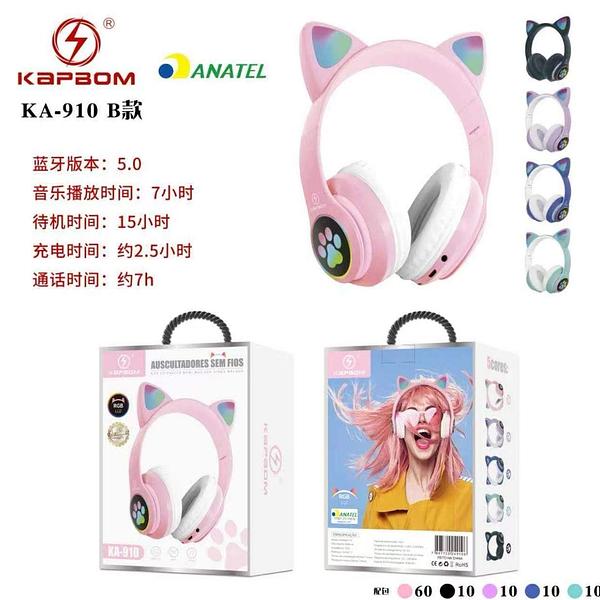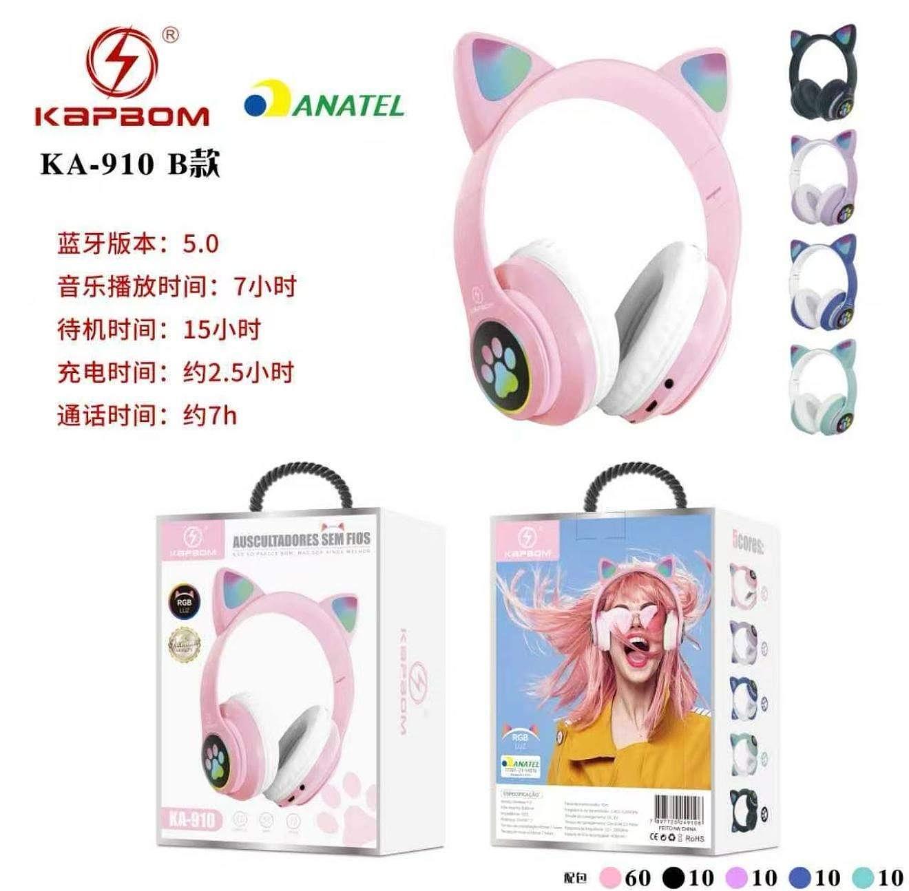 Fone De Ouvido Bluetooth Orelha Gatinho Infantil Led Sem Fio