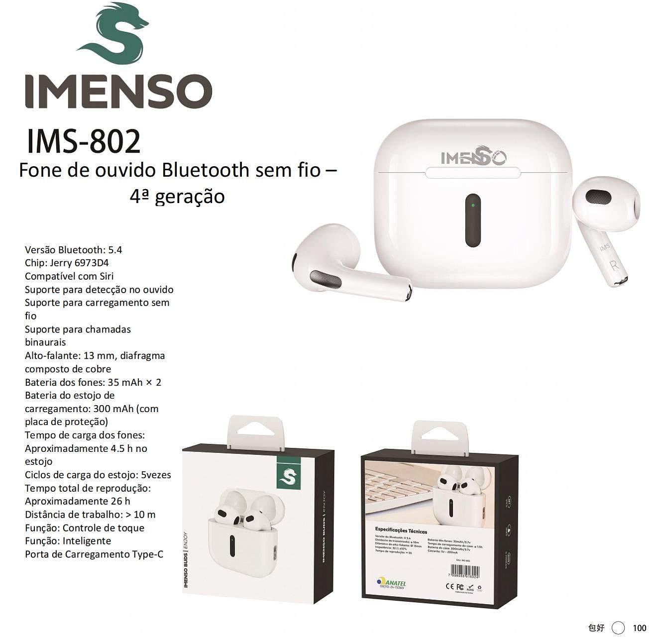 FONE DE OUVIDO BLUETOOTH SEM FIO IMENSO BUDS ENJOY ORIGINAL 5.4 300Mah Ipx4