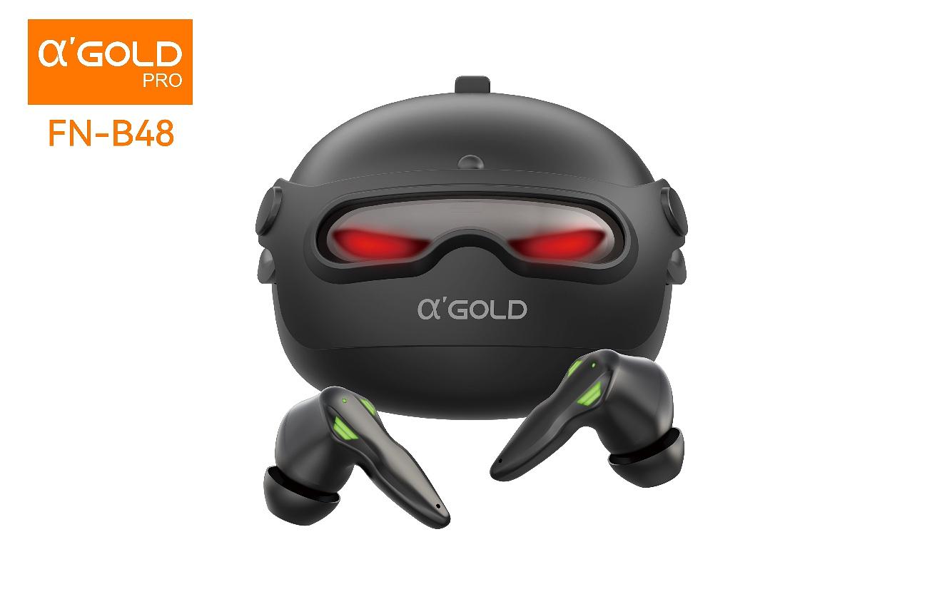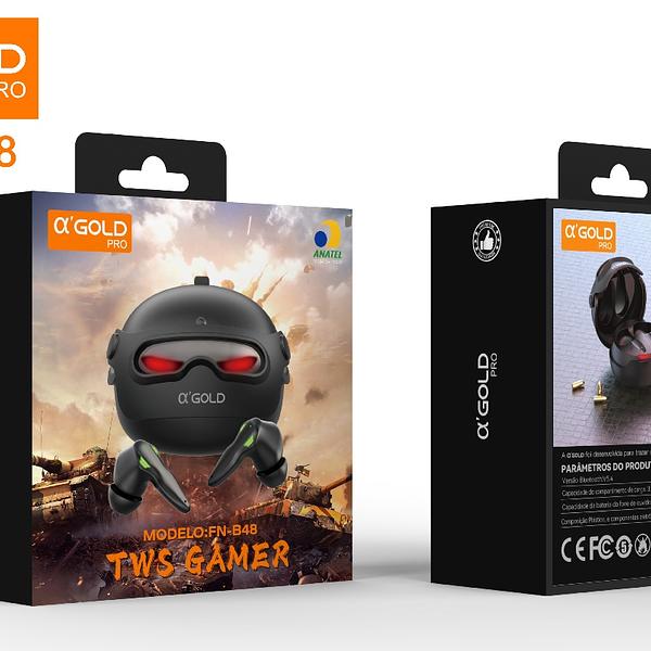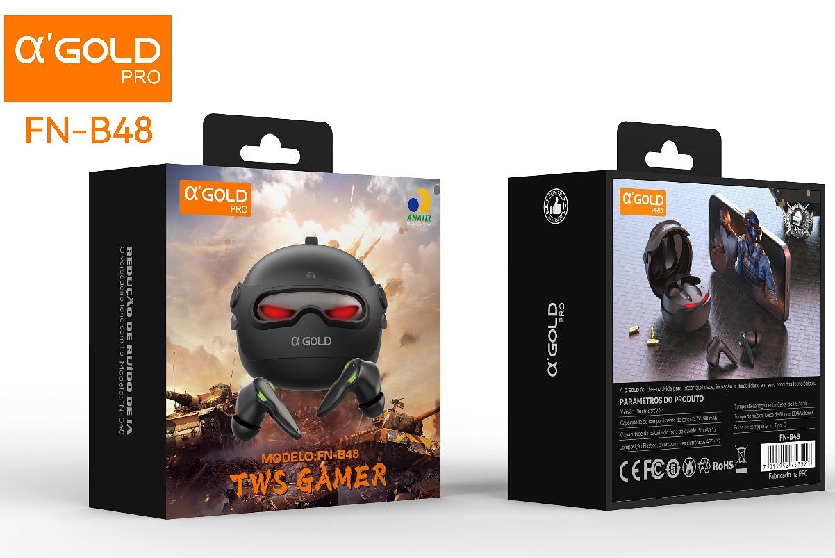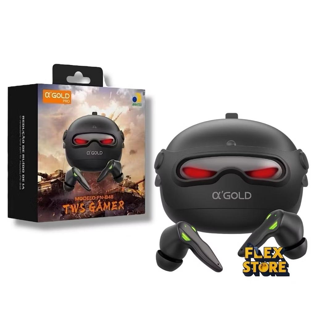Fone de Ouvido Bluetooth TWS Gamer FN-B48 Alpha Gold Pro Sem Fio com Case LED e Redução de Ruidos