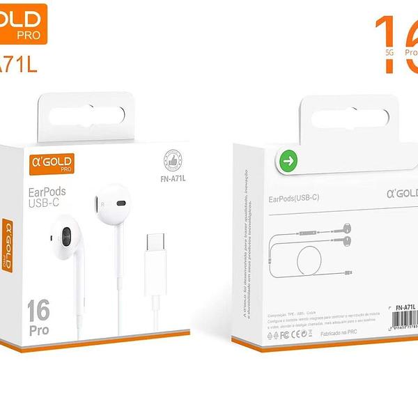 Fone de ouvido com fio Tipo C (USB-C) Compatível com a Linha Completa do iPhone 16 Alto qualidade