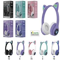 Fone De Ouvido Gatinho Led Colorido Rgb Bluetooth E Radio