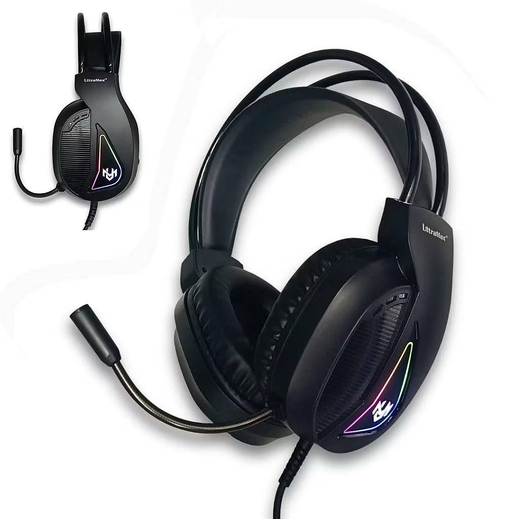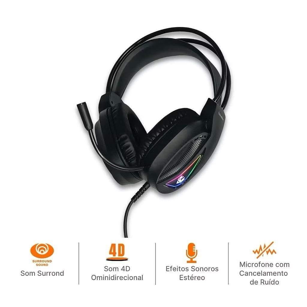 Fone Gamer Headset Led RGB com microfone RGB, Drivers 50mm, Preto USB e P2 Videogame