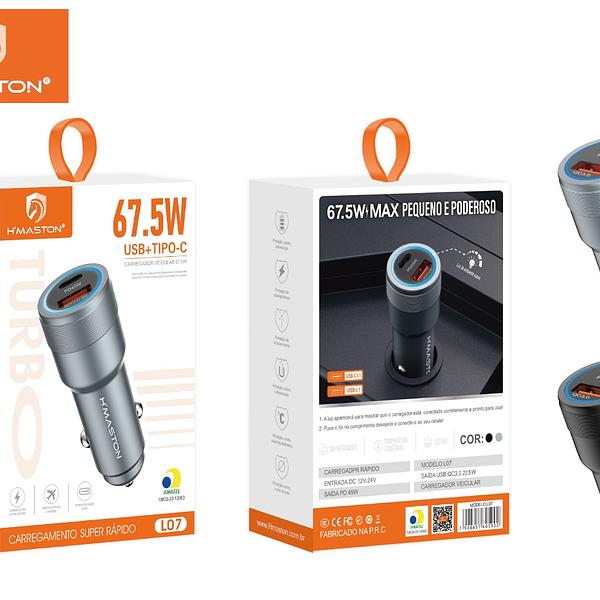 Fonte Carregador carro USB + Tipo-c 67.5w Hmaston-L06