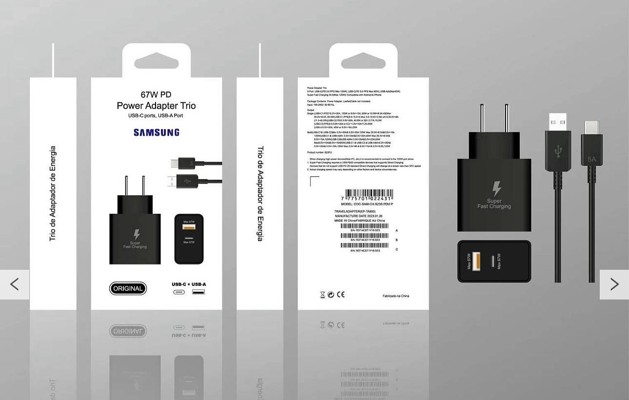 Carregador Turbo 67w Pd Adapter Usb-c Usb-a Samsung com cabo typec