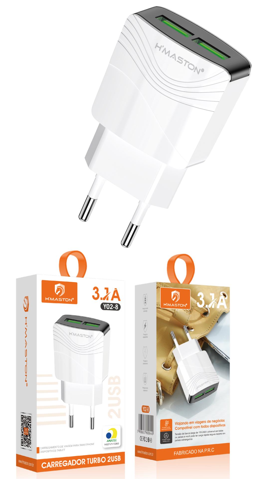 Fonte De Carregador H'maston Pro Y02-8 Turbo Duas Porta Usb 3.1a
