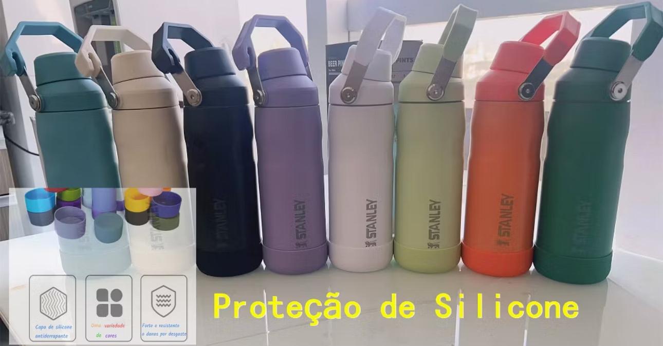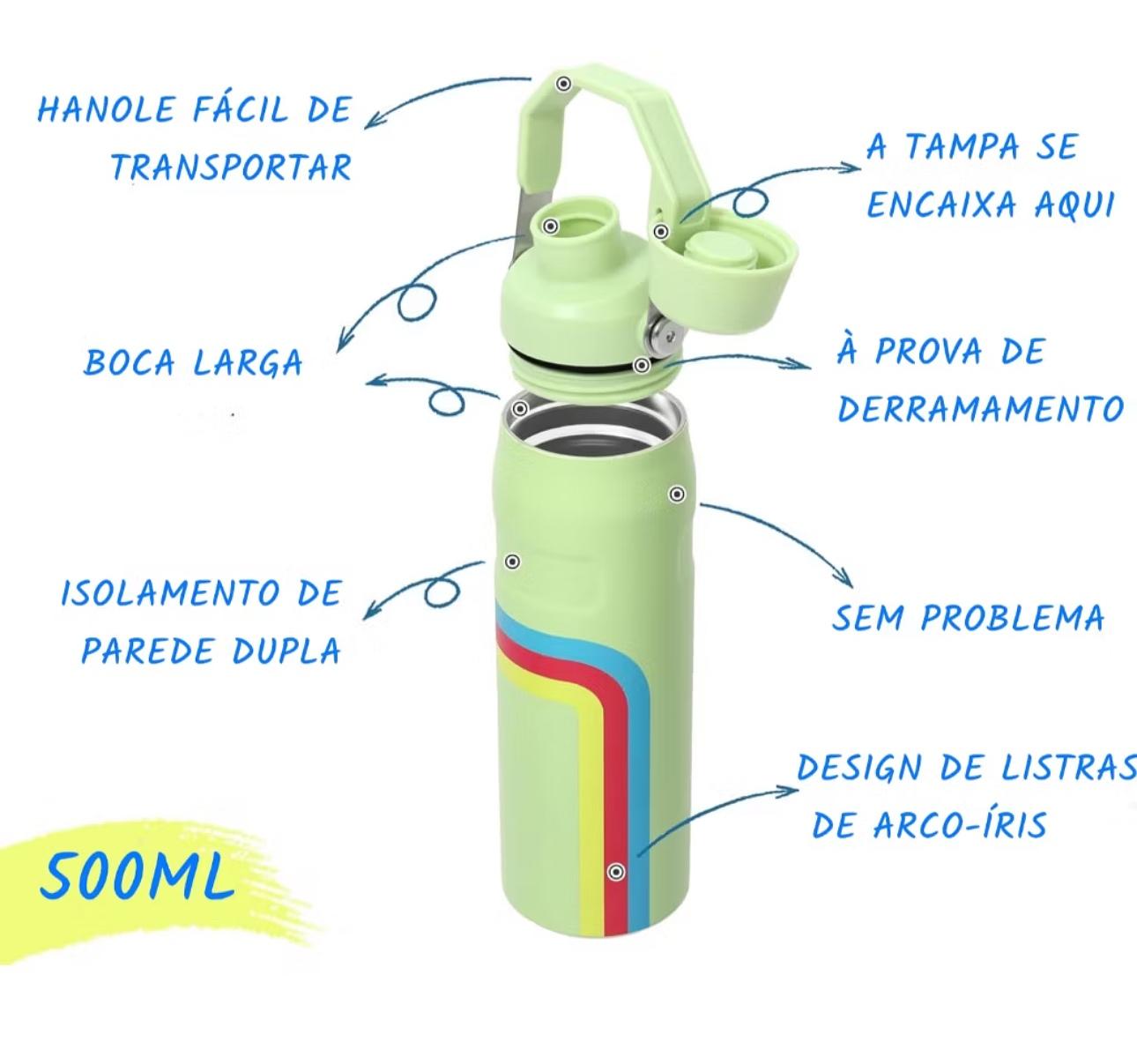 Garrafa térmica 500ml com proteção de silicone mantendo sua água gelada ou seu café quente Fast flow