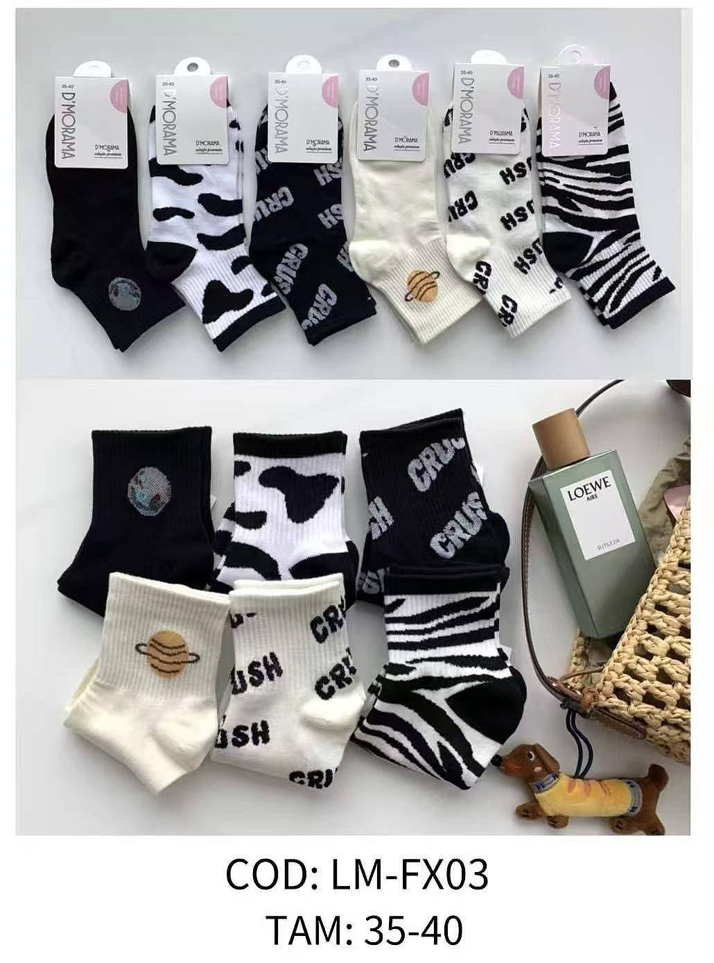 kit 12 Pares de Meia Feminina Adulto e Juvenil Estampadas Gibis Modernas de Algodão 35-40